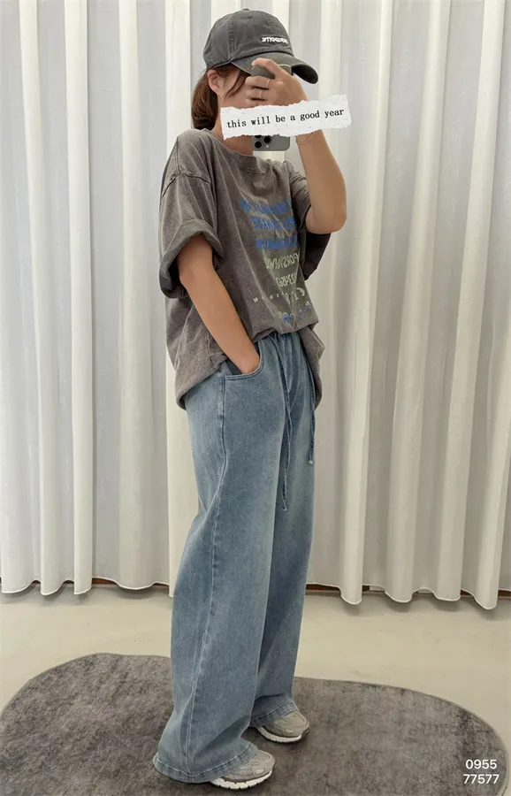 附繩牛仔寬褲(S-XL可穿)_G24