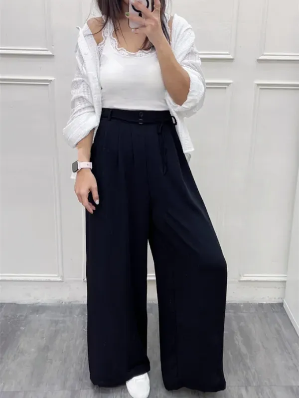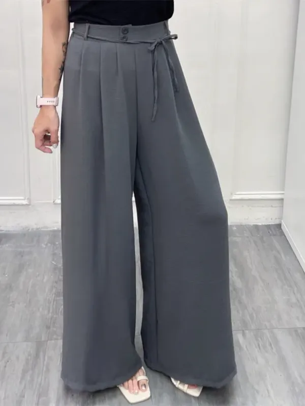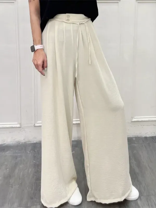 超大推必買!壓褶雙釦綁帶寬褲