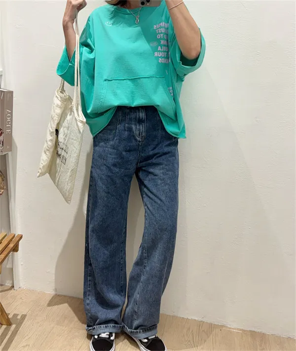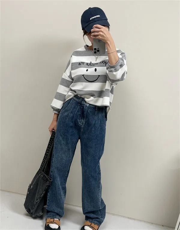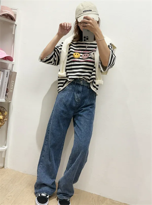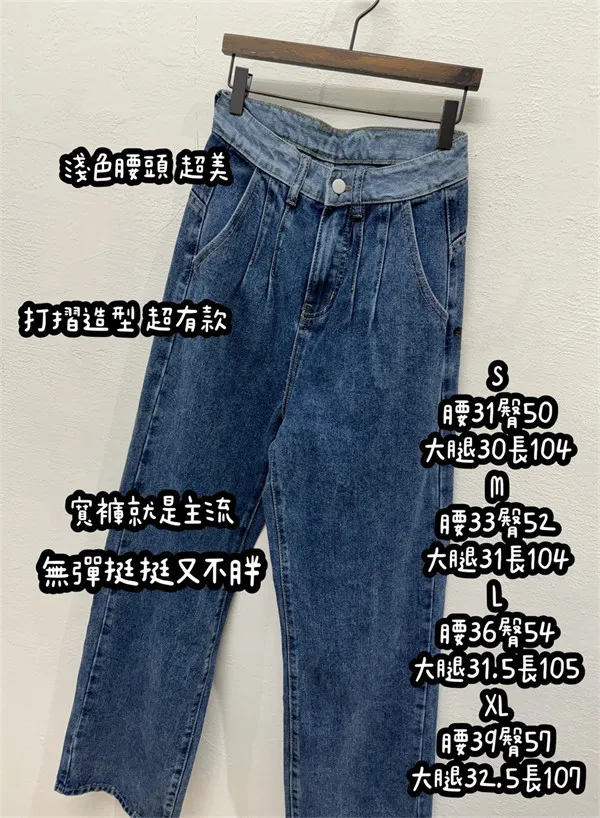 【現貨】韓國 打褶腰頭洗淺寬褲