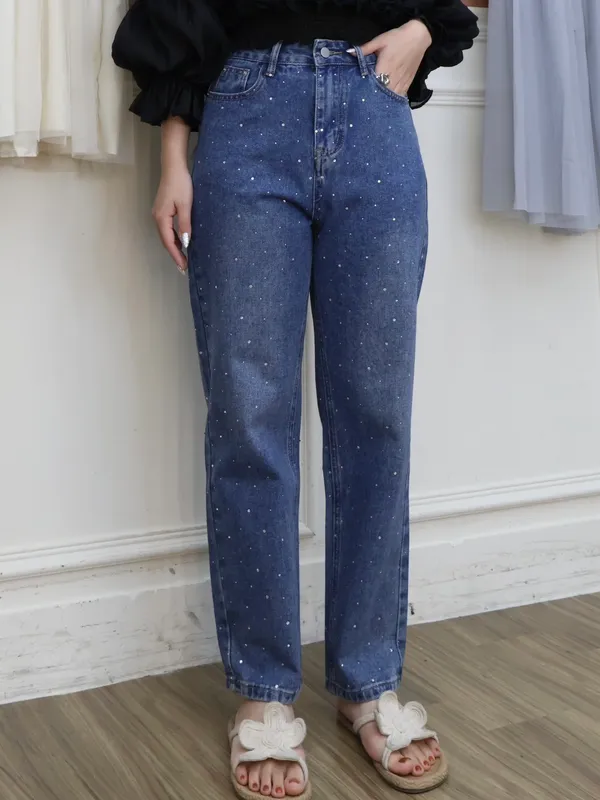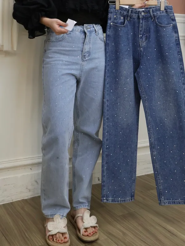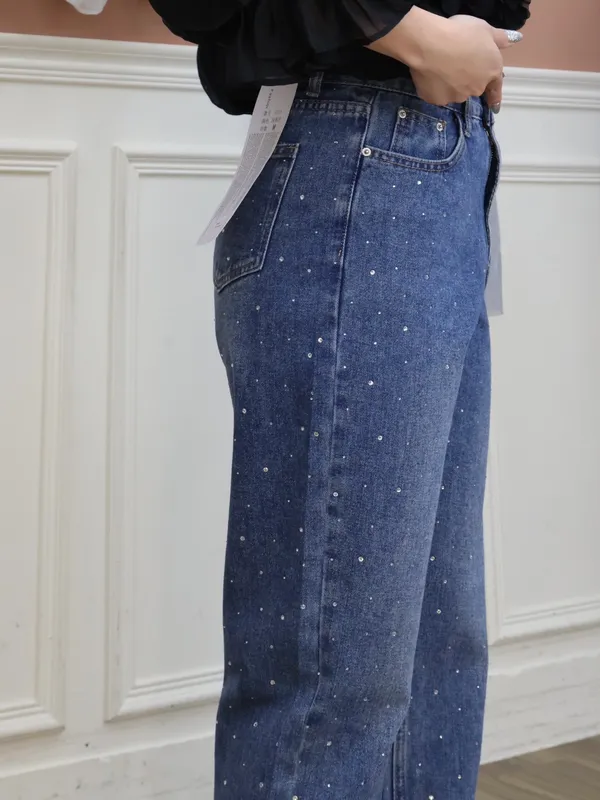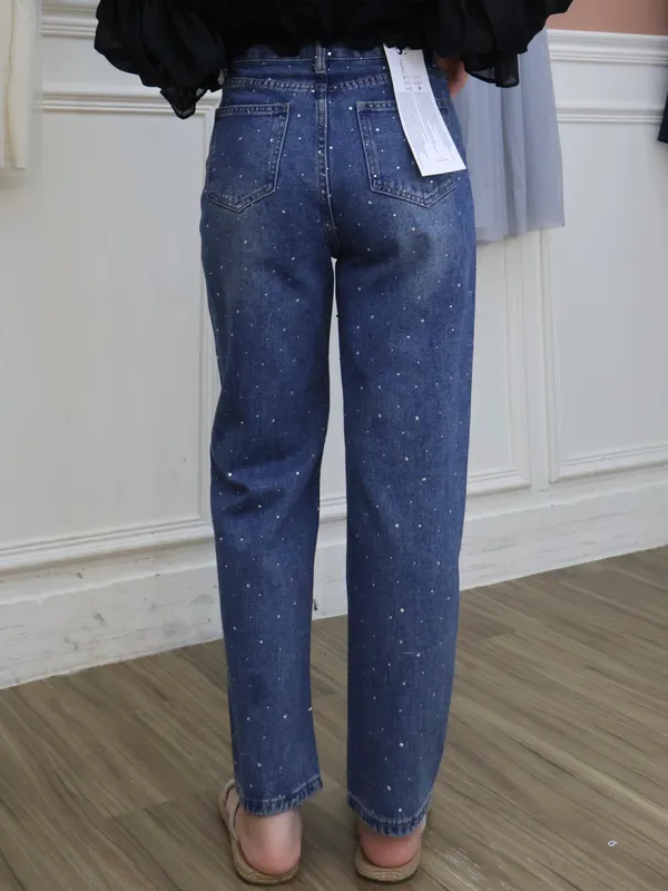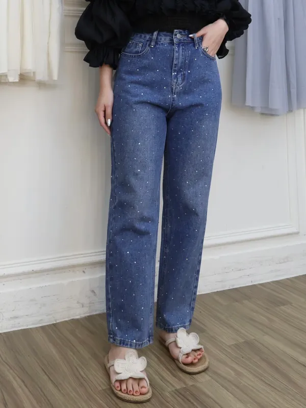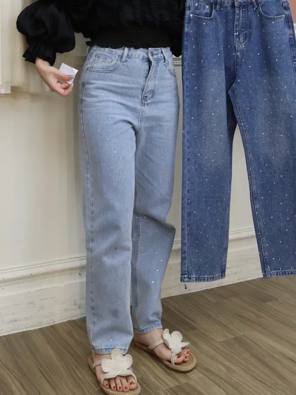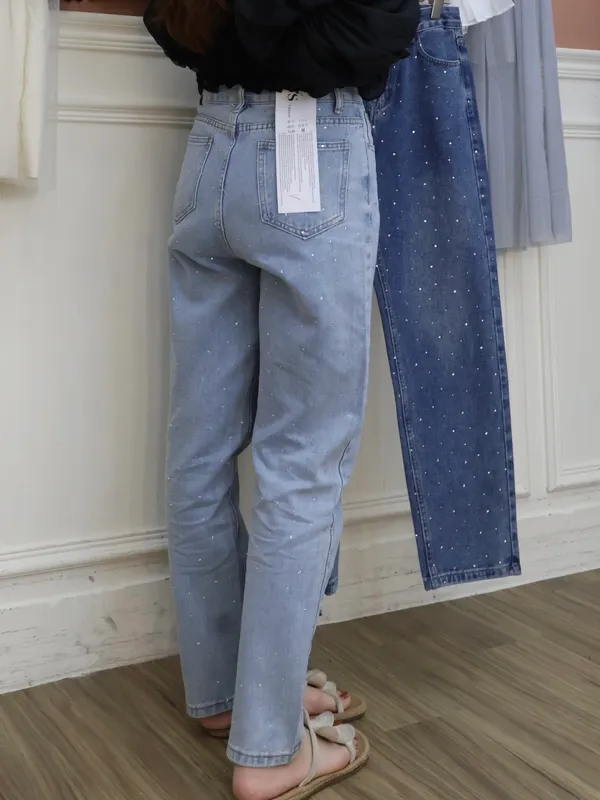 亮鑽牛仔直筒褲_A23