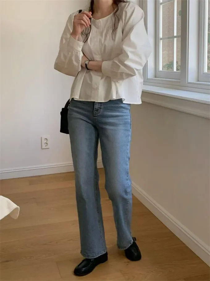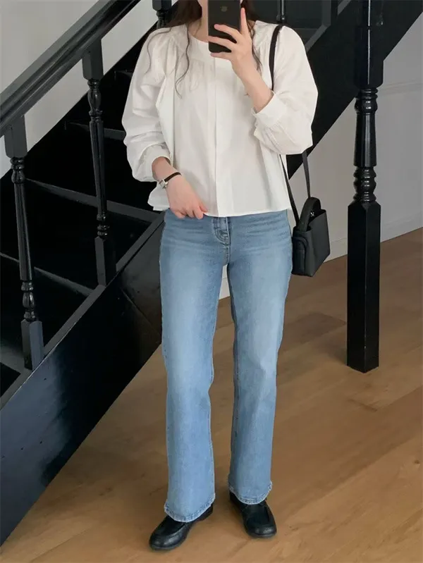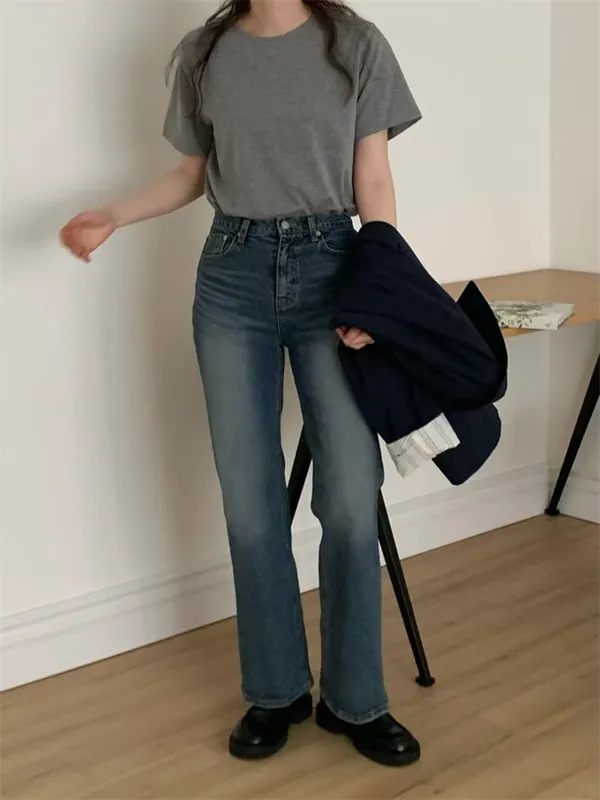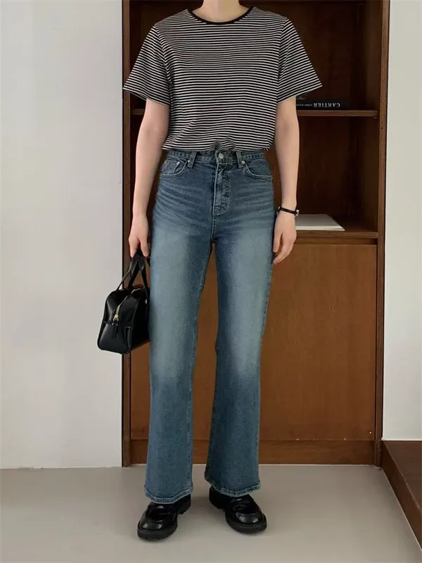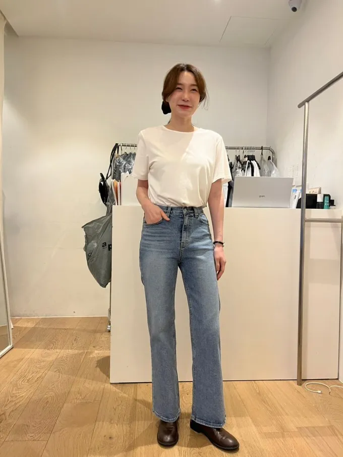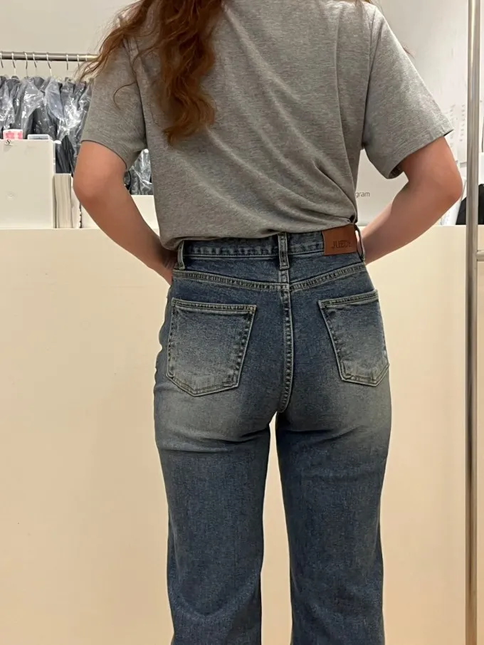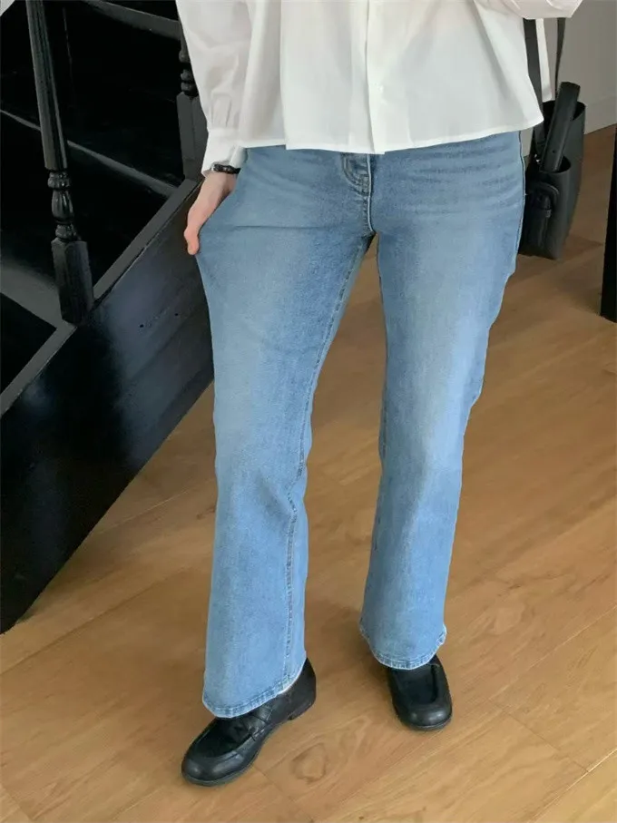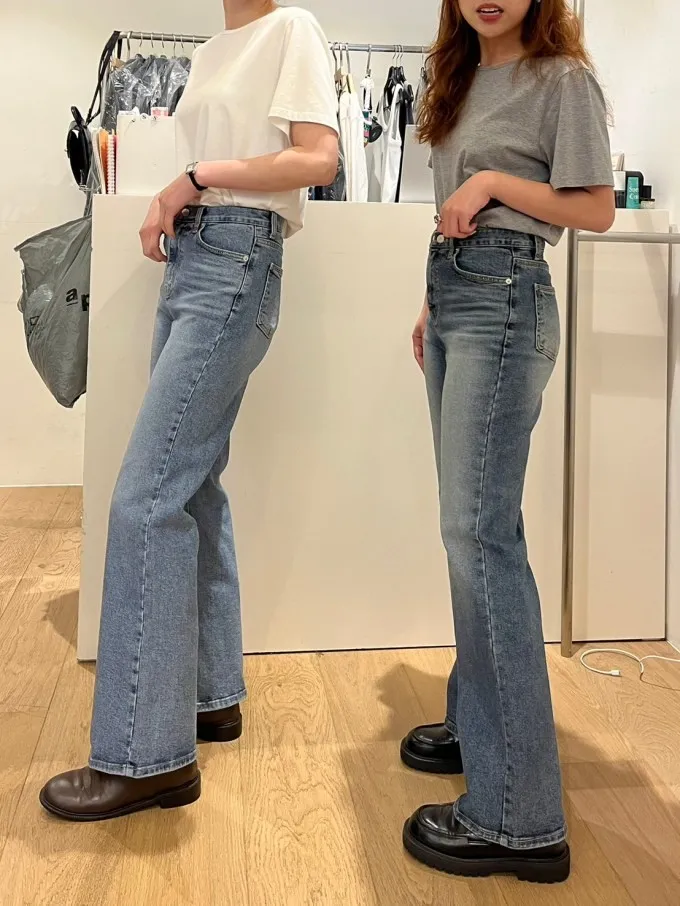 【必買】韓國 淡霧水洗微喇叭牛仔褲_H04