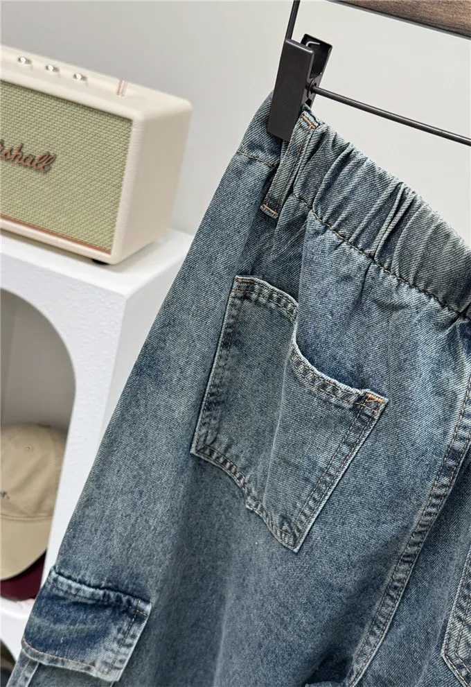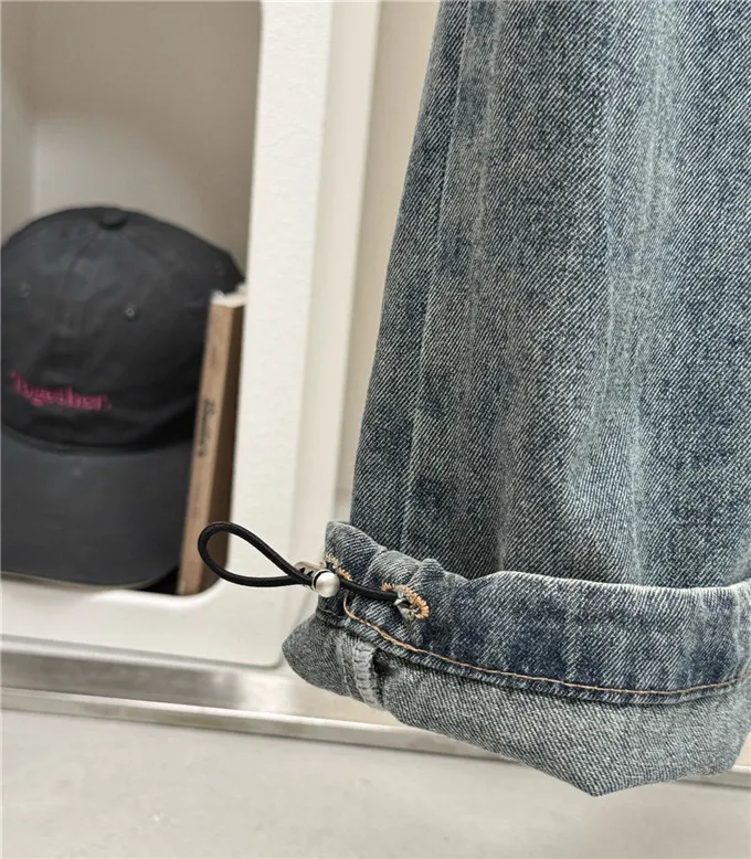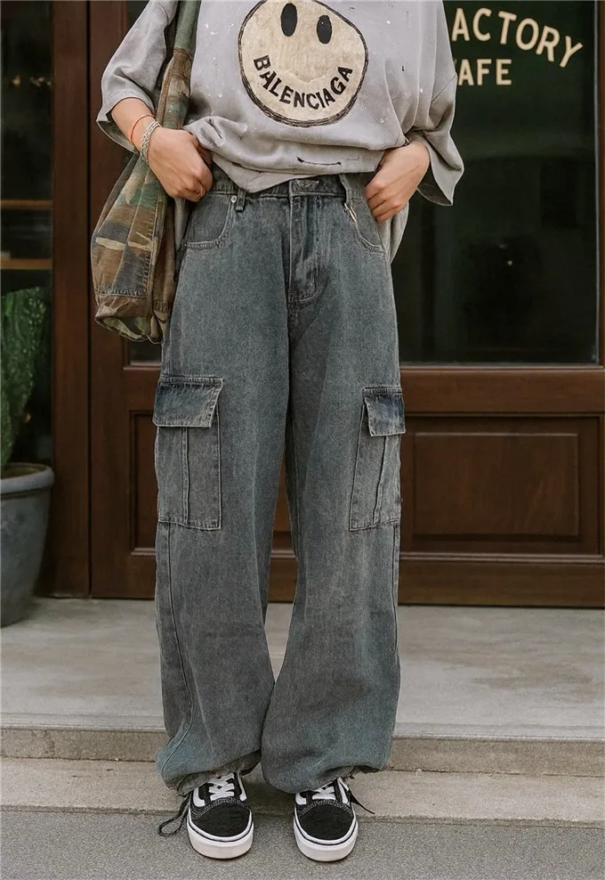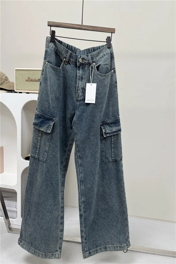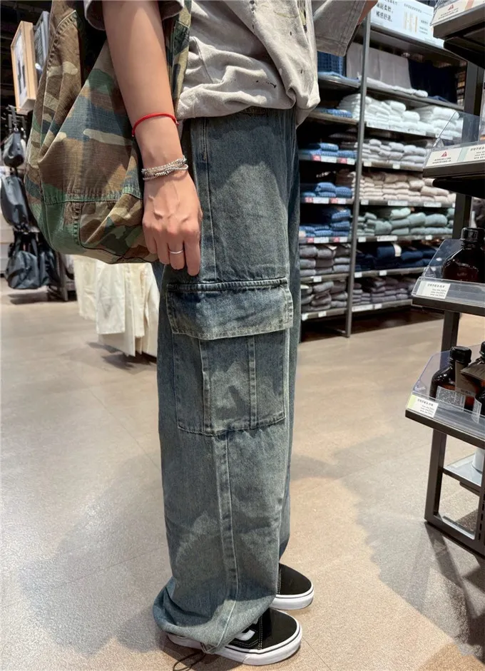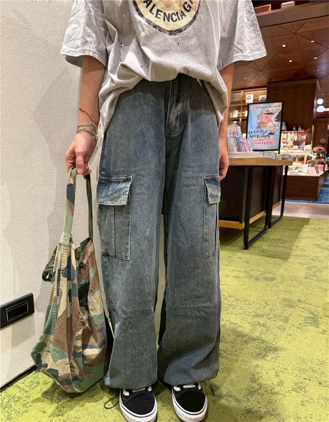 復古刷色牛仔工裝褲