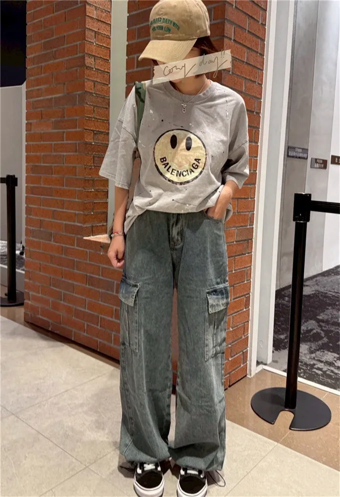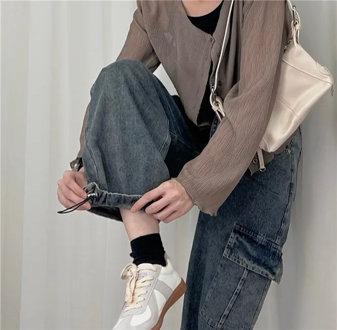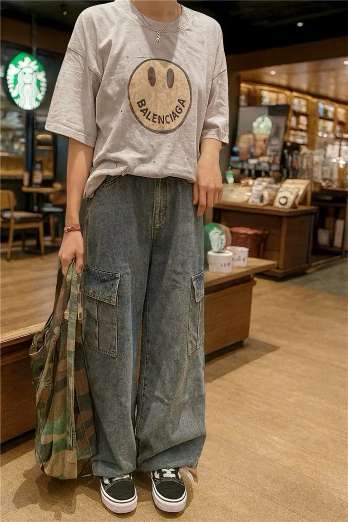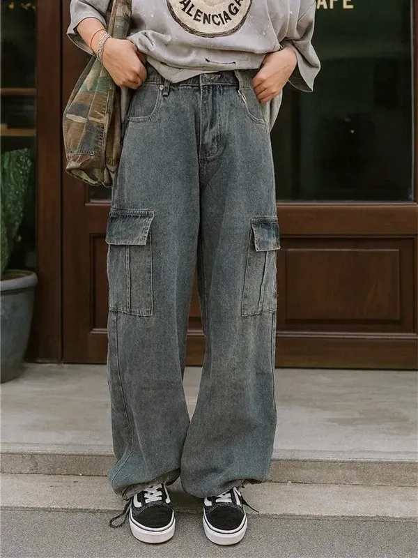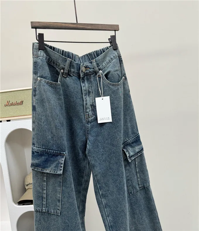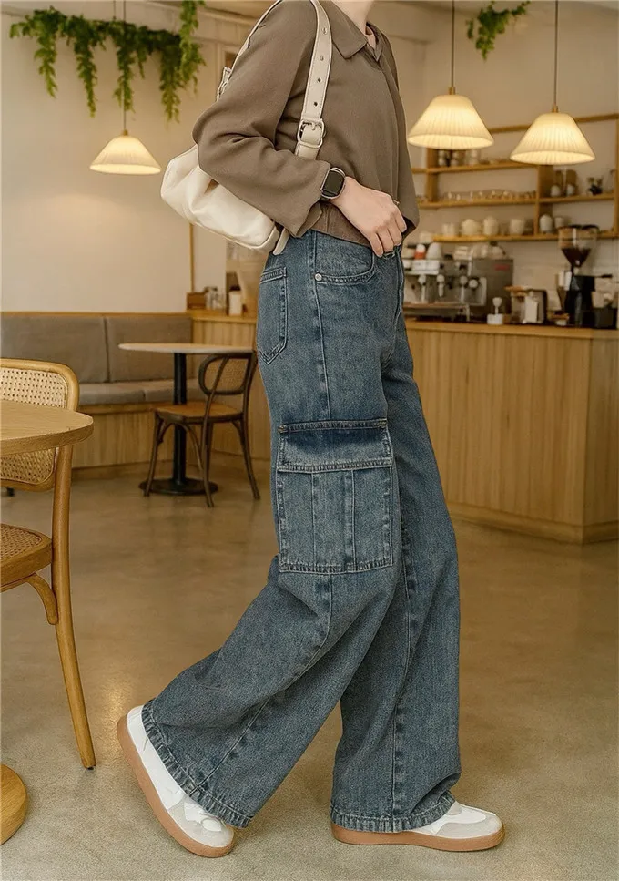 復古刷色牛仔工裝褲