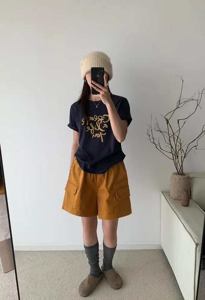 燈芯絨工裝短褲(S-XL可穿)_C03