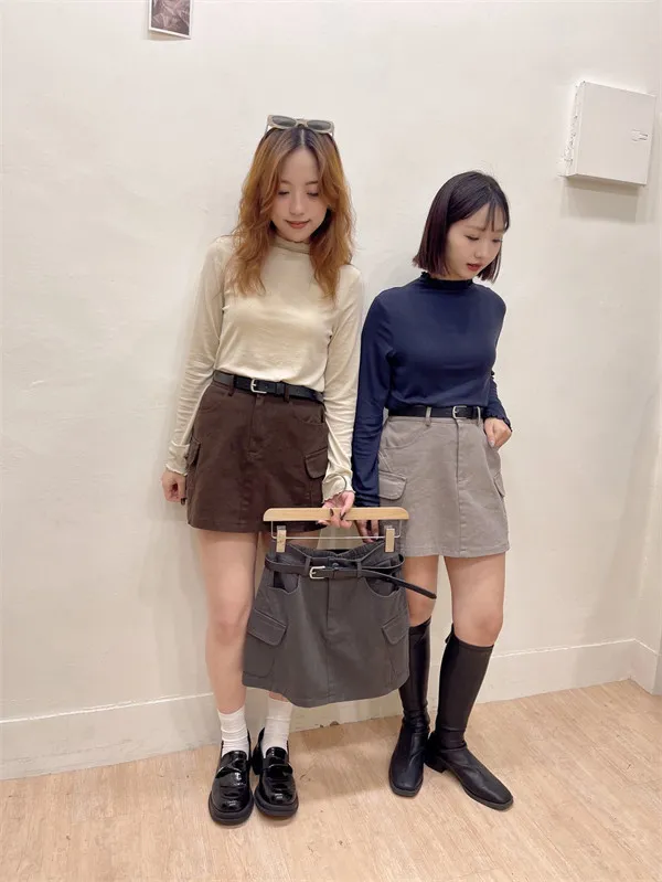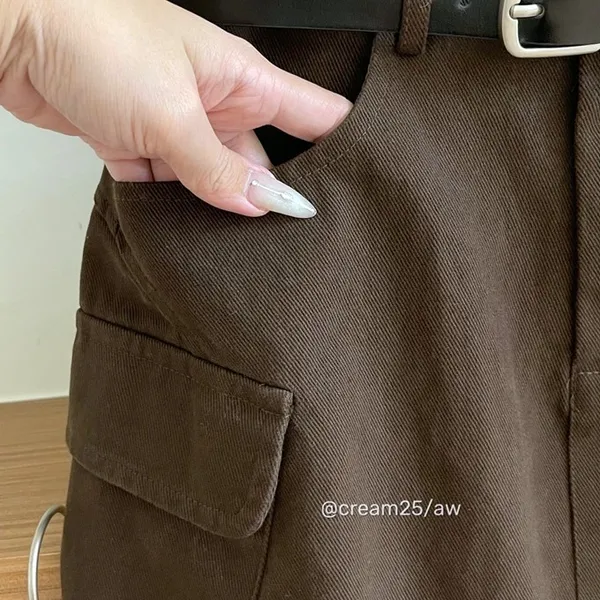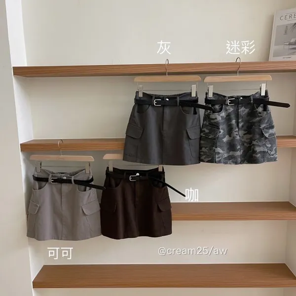 工裝口袋水洗皮帶短裙_E04
