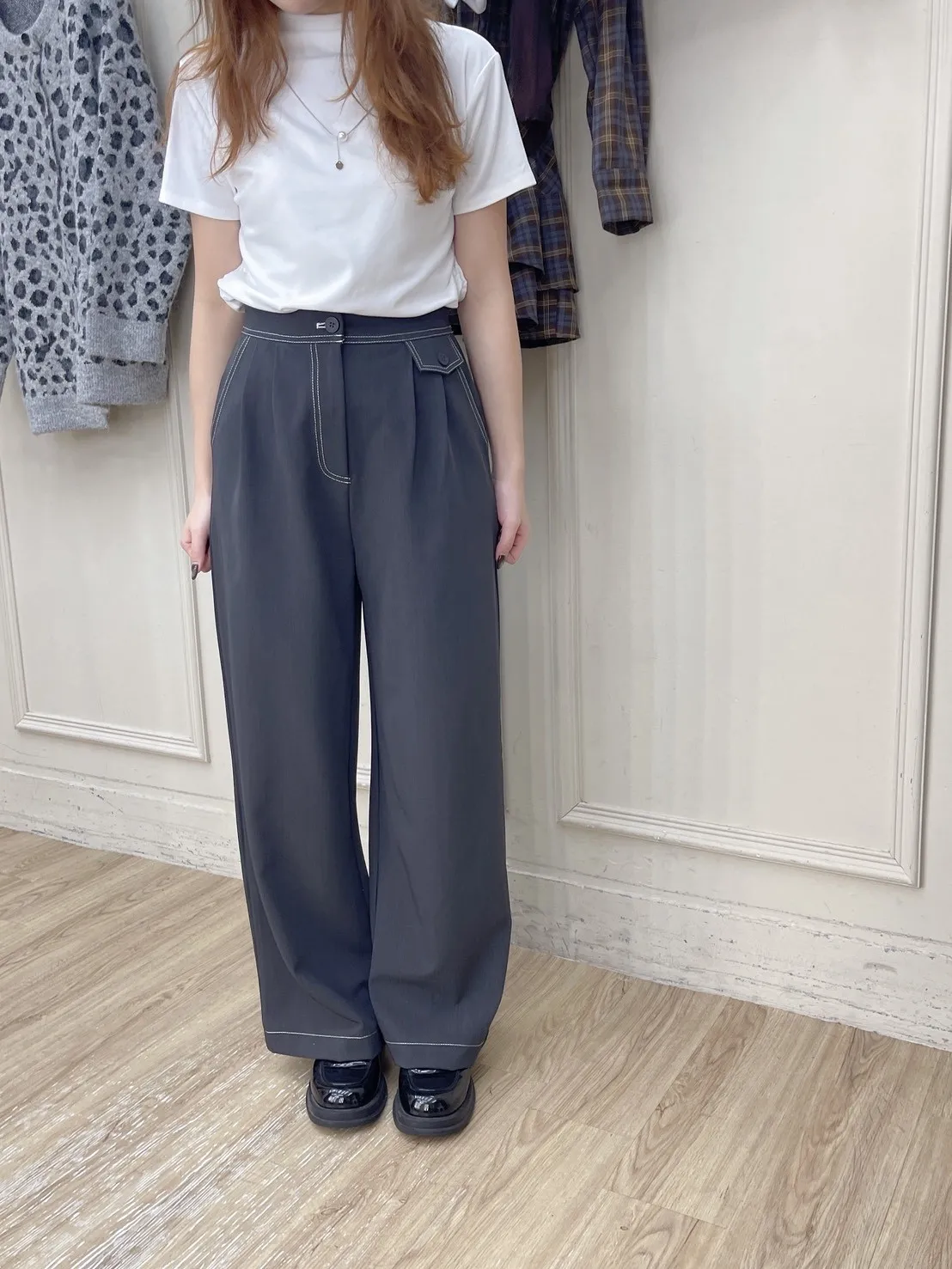 霧調高訂線條挺版長褲_F18