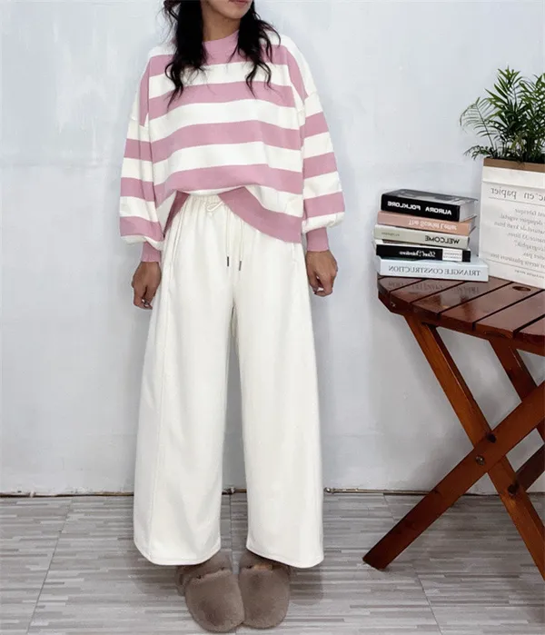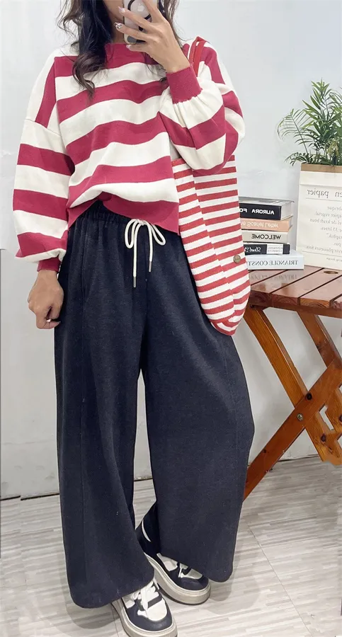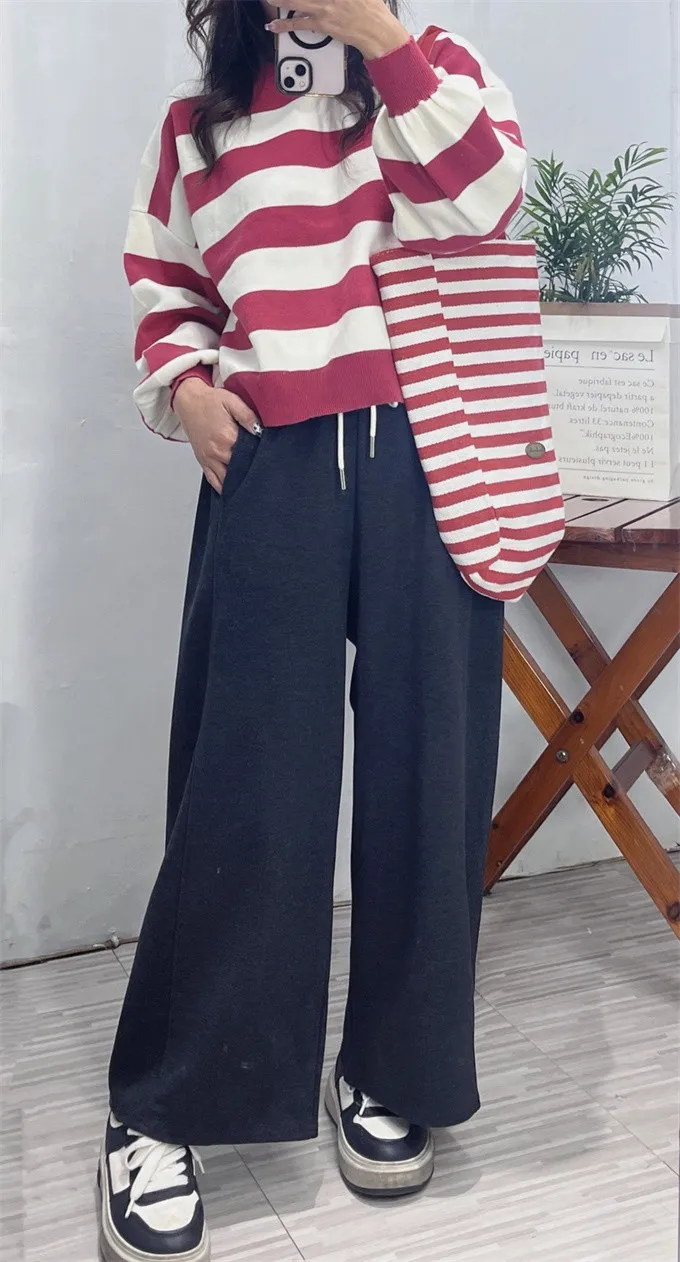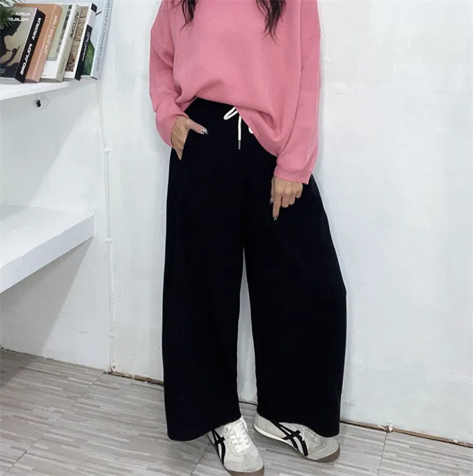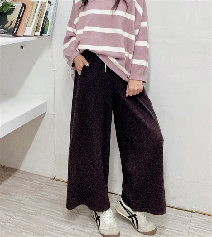 秋冬鬆鬆腰毛呢綁帶褲_D12