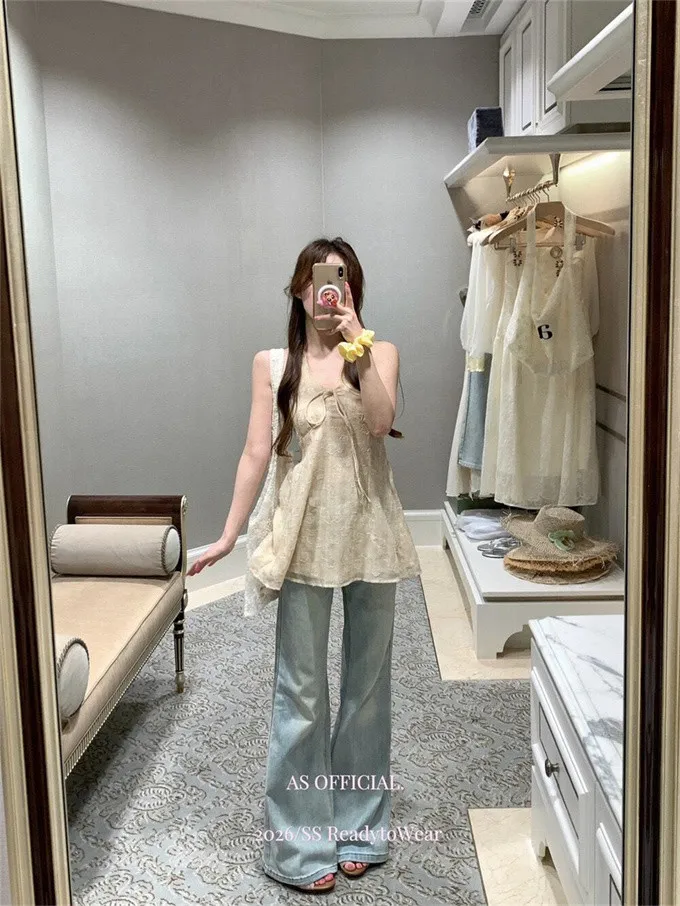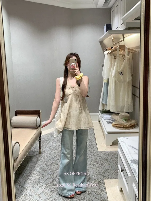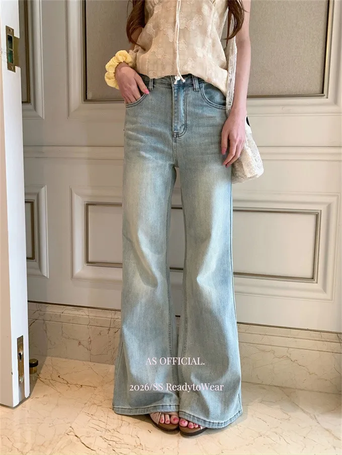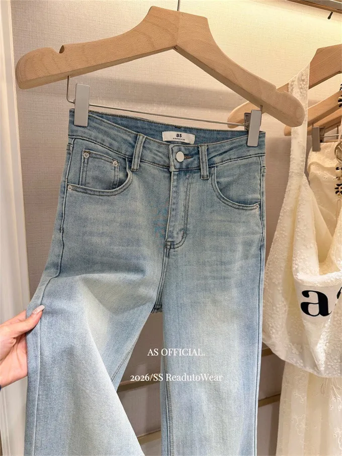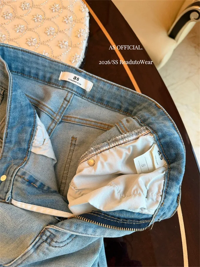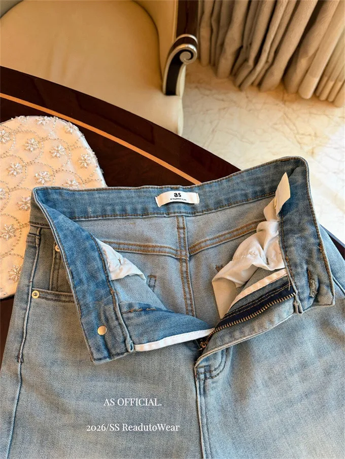 瘦腿標竿後刺繡水洗微喇牛仔褲_A03
