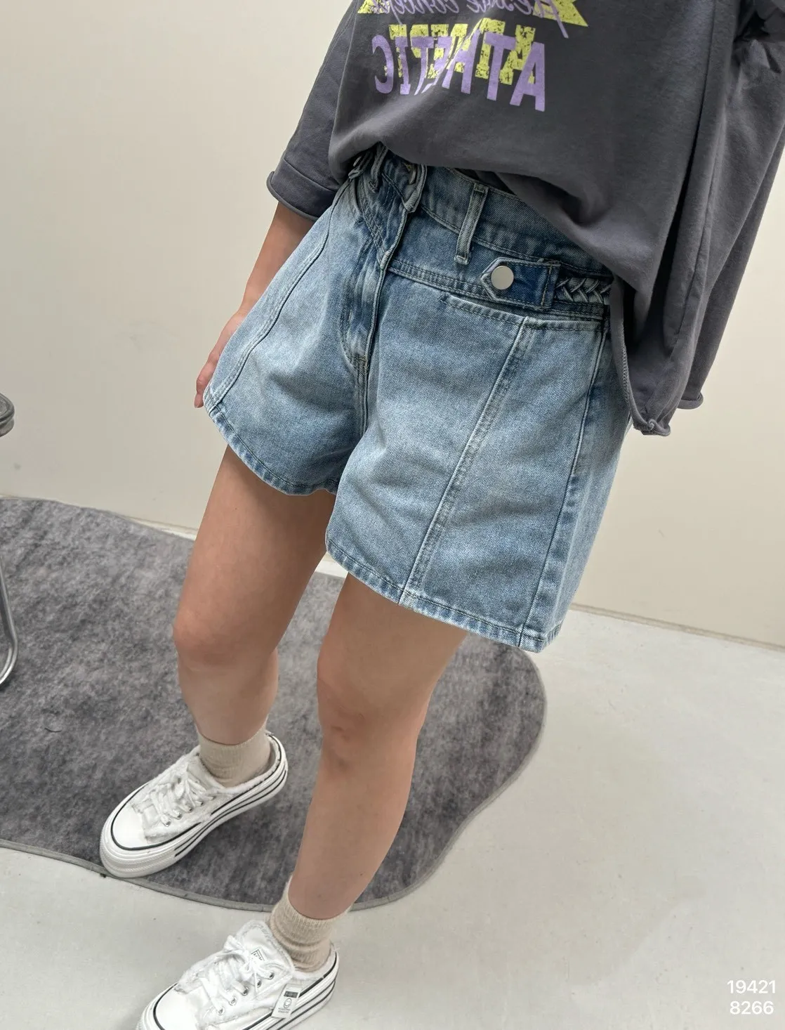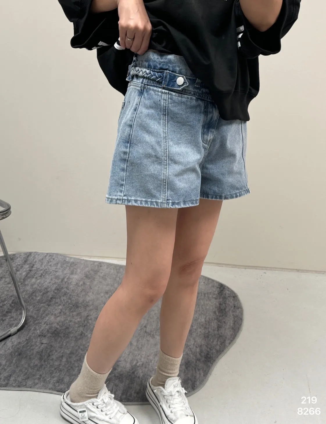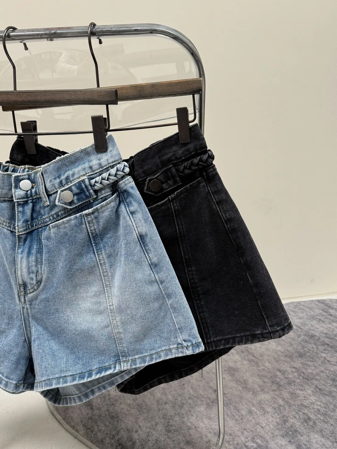 編織麻花繩牛仔短褲_G02