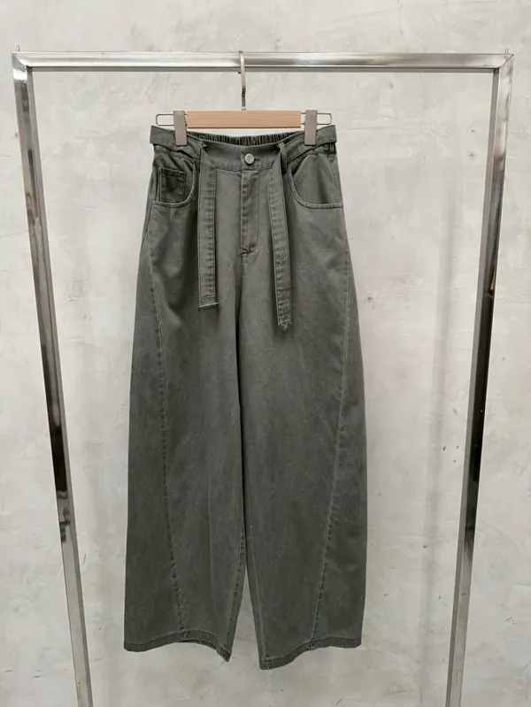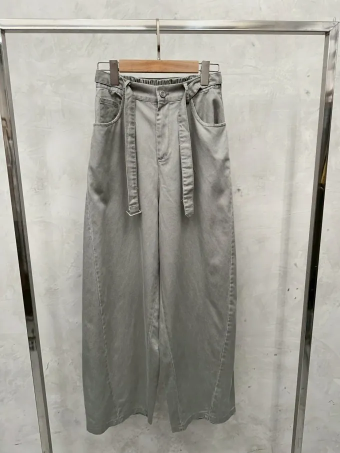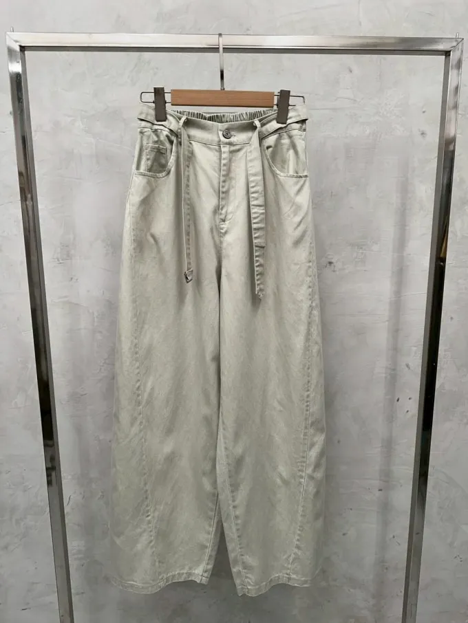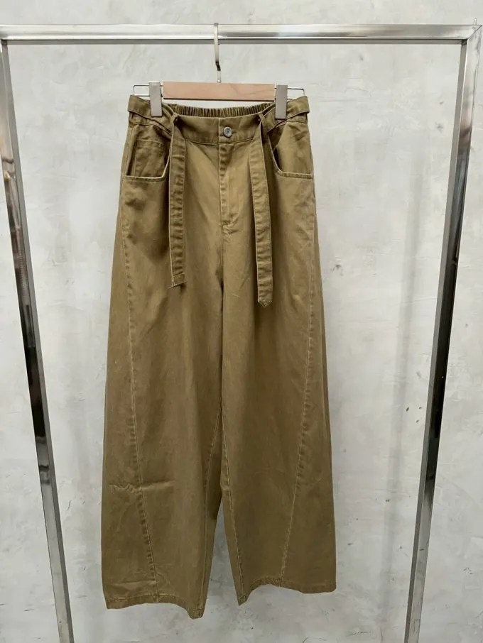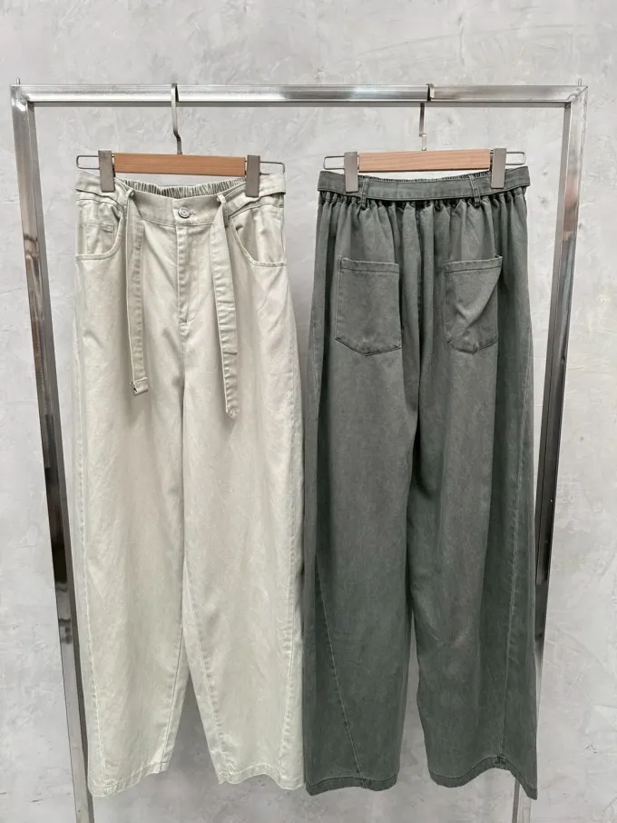 後鬆緊挺面料斜紋繭型褲_G18