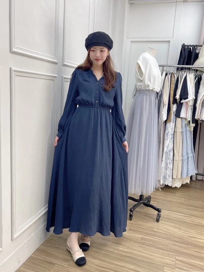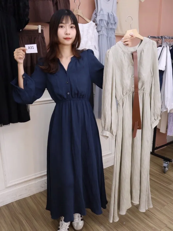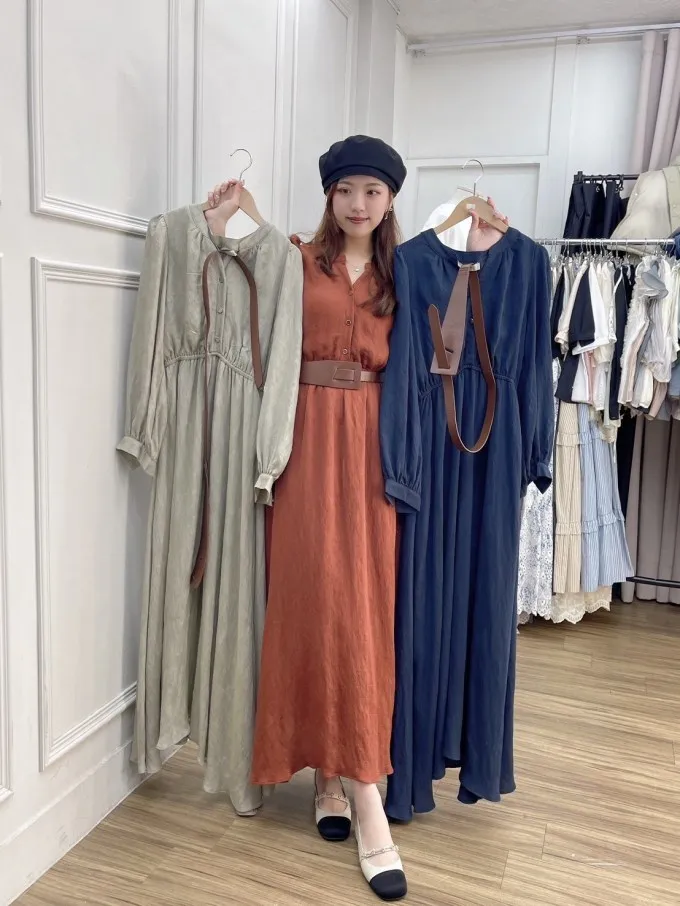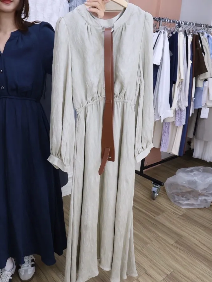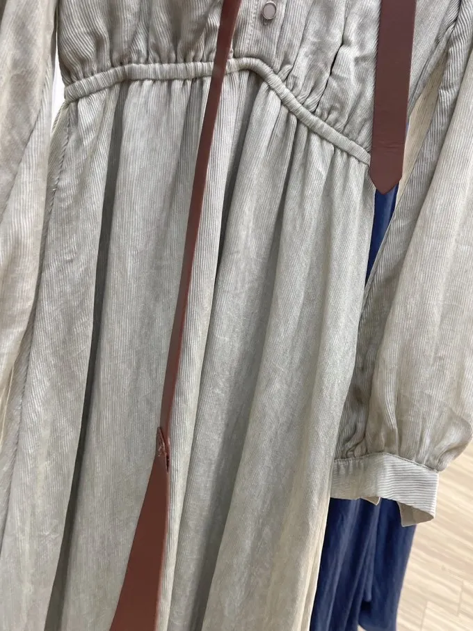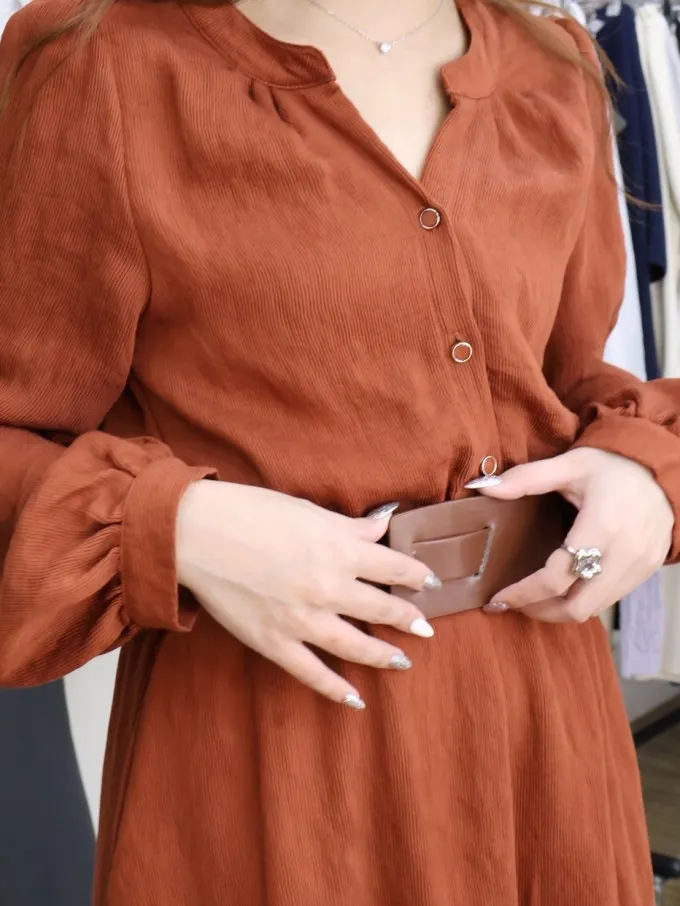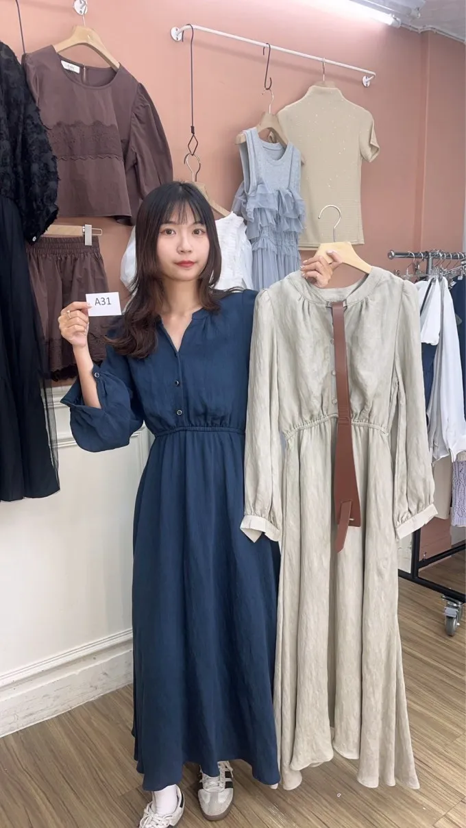 開襟排釦縮腰長洋(附腰帶/有口袋)_A31