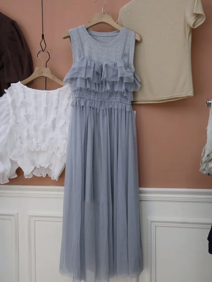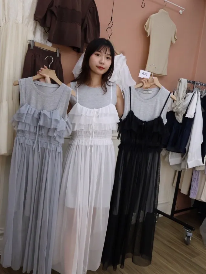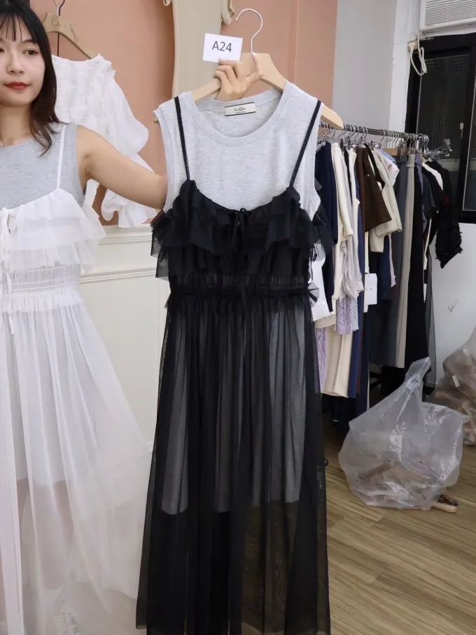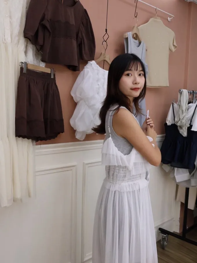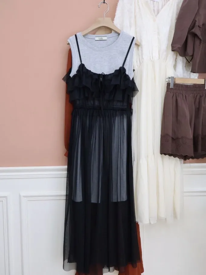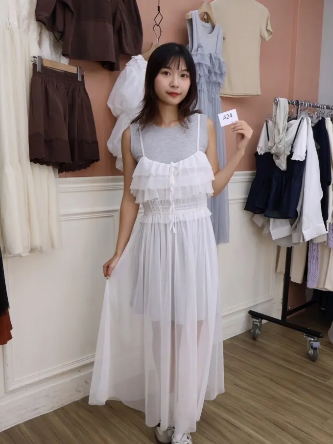 雙層紗感吊帶連身裙_A24