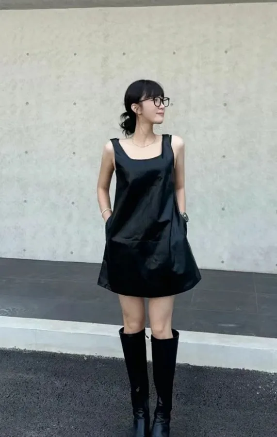 韓國 方領皮革背心側口袋短洋(大L可穿)_D64