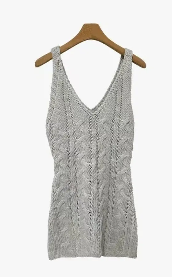 韓國 麻花針織背心洋裝(M可穿)_D74