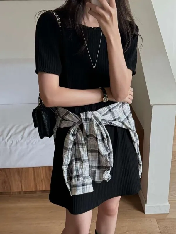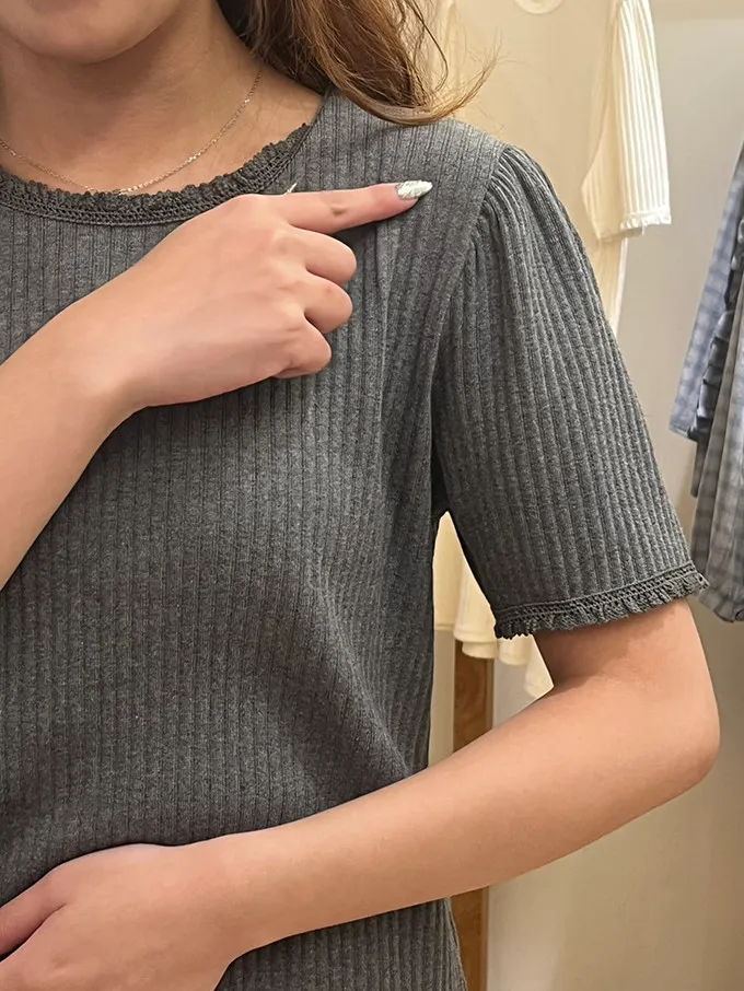 韓國 韓系坑條彈力短洋(S-XL可穿)_H34