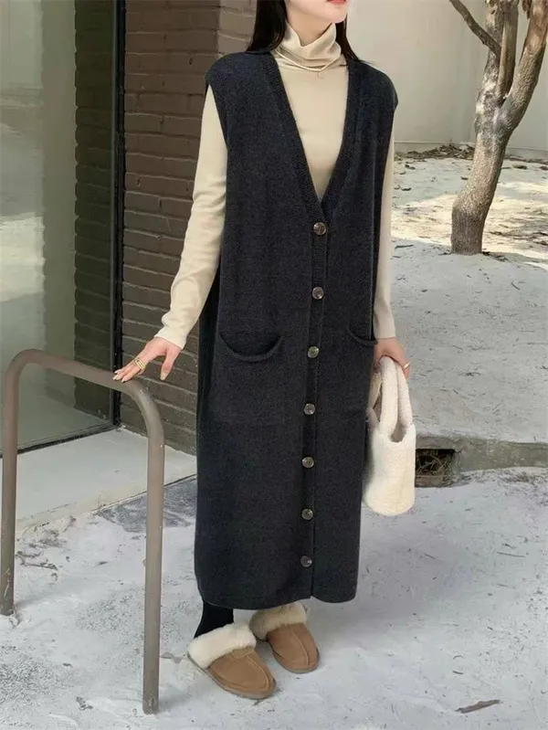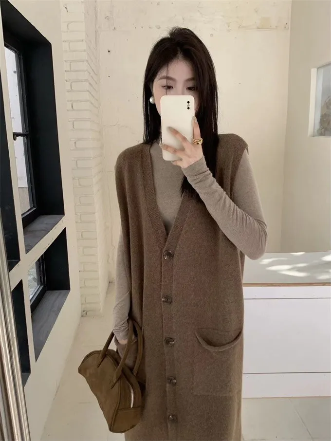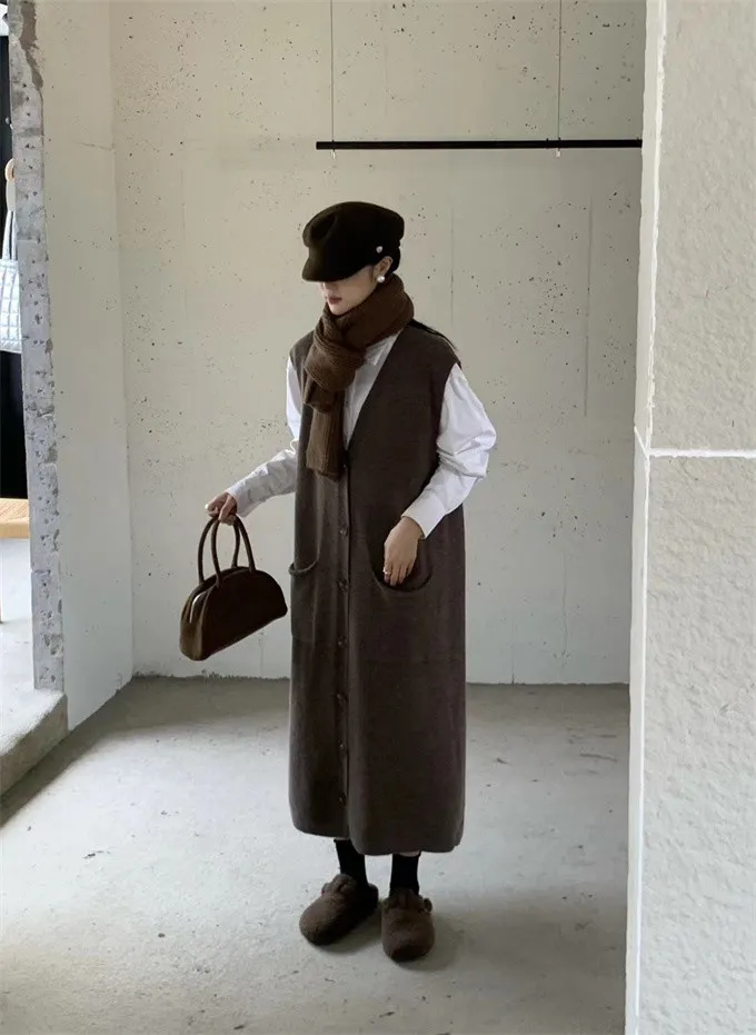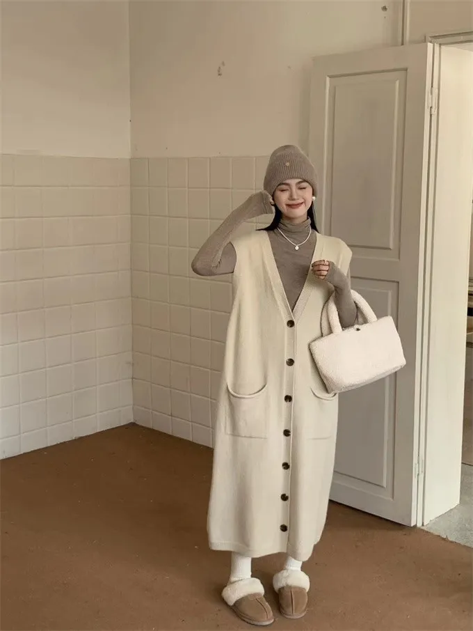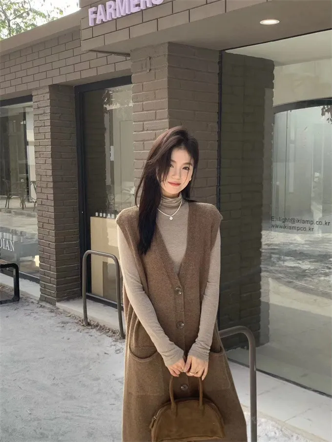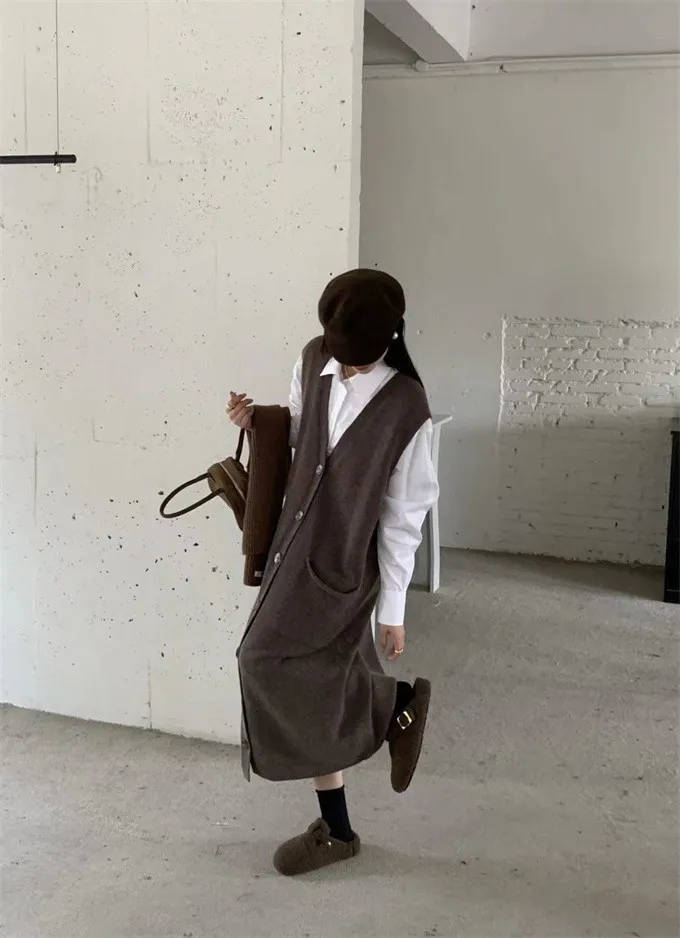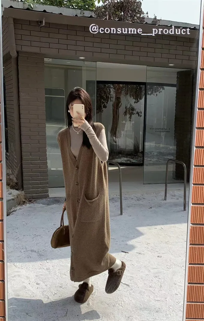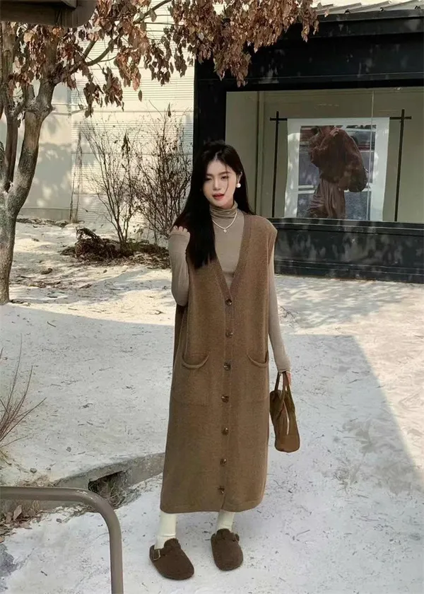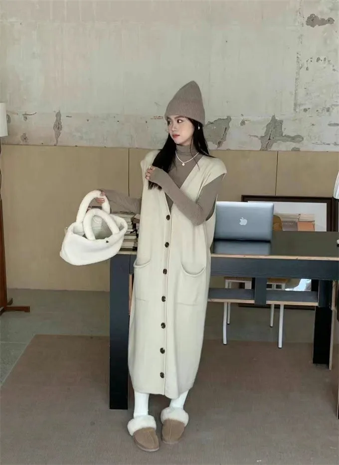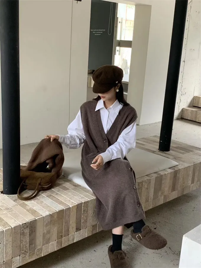 法式慵懶針織背心洋裝_B01