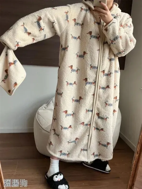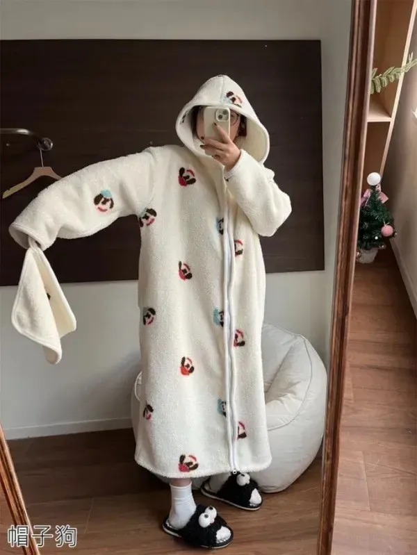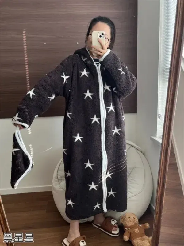 🔥【福利標】珊瑚絨連帽拉鍊保暖家居服(顏色隨機)_睡