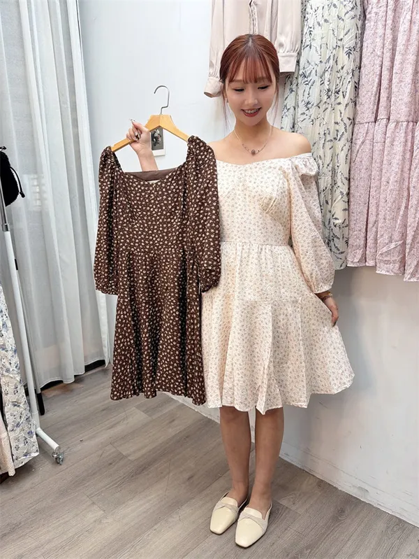 氣質UV領碎花小洋裝(S-大L可穿、有口袋)_E01