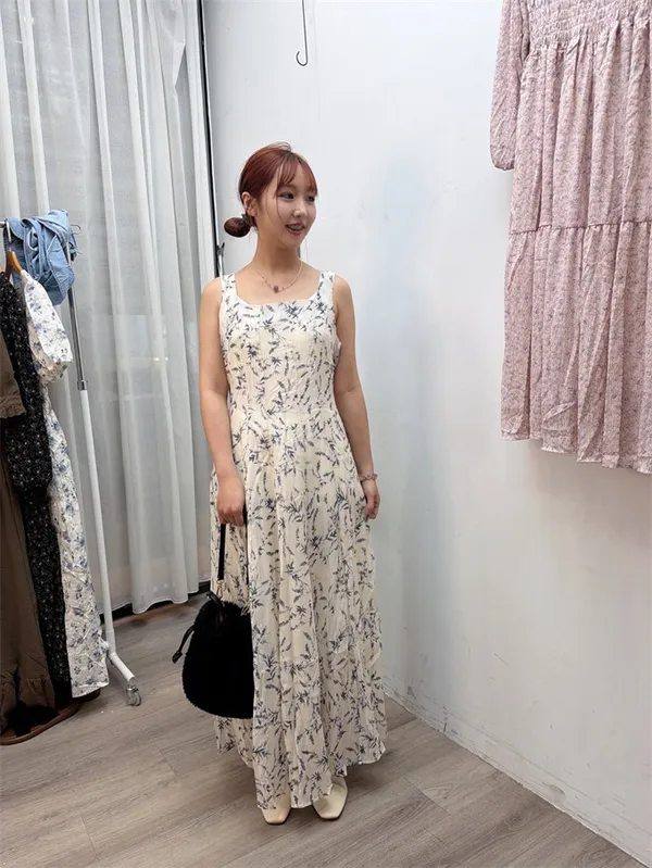 氣質特殊花布無袖長洋(S-L可穿、有口袋)_E11