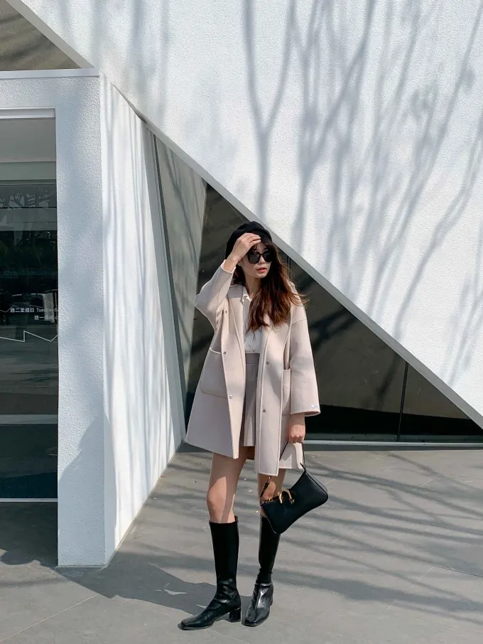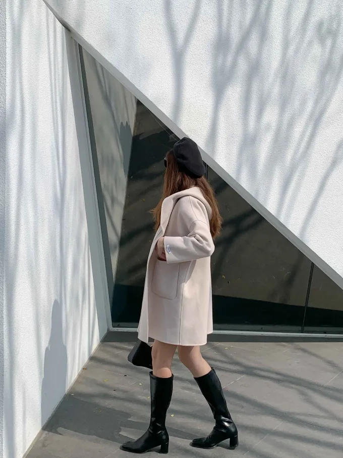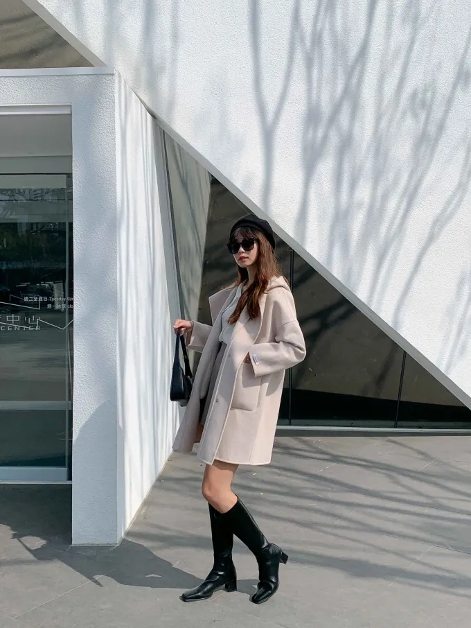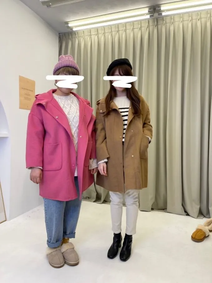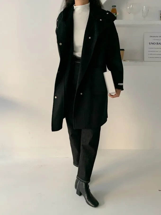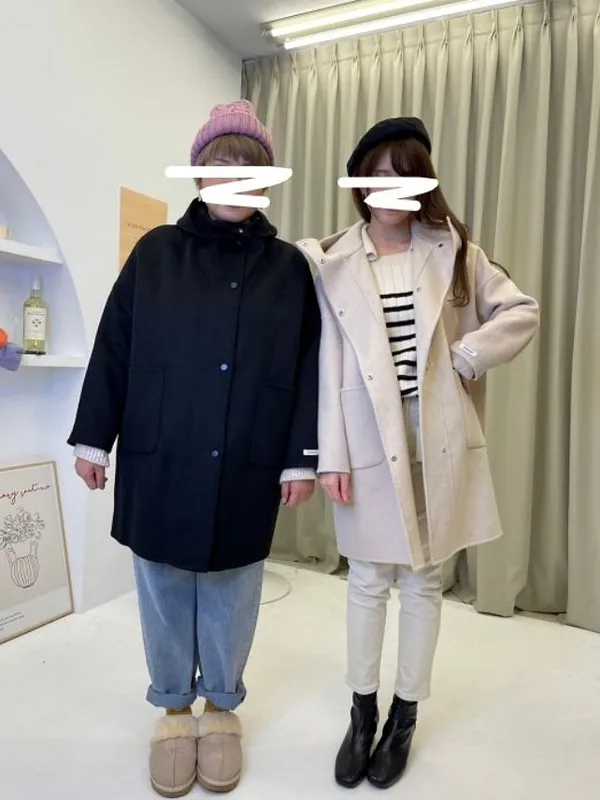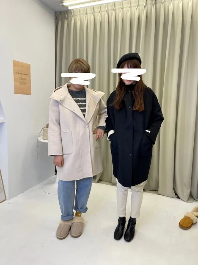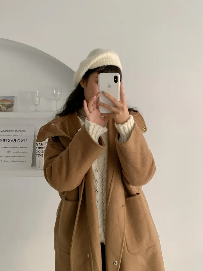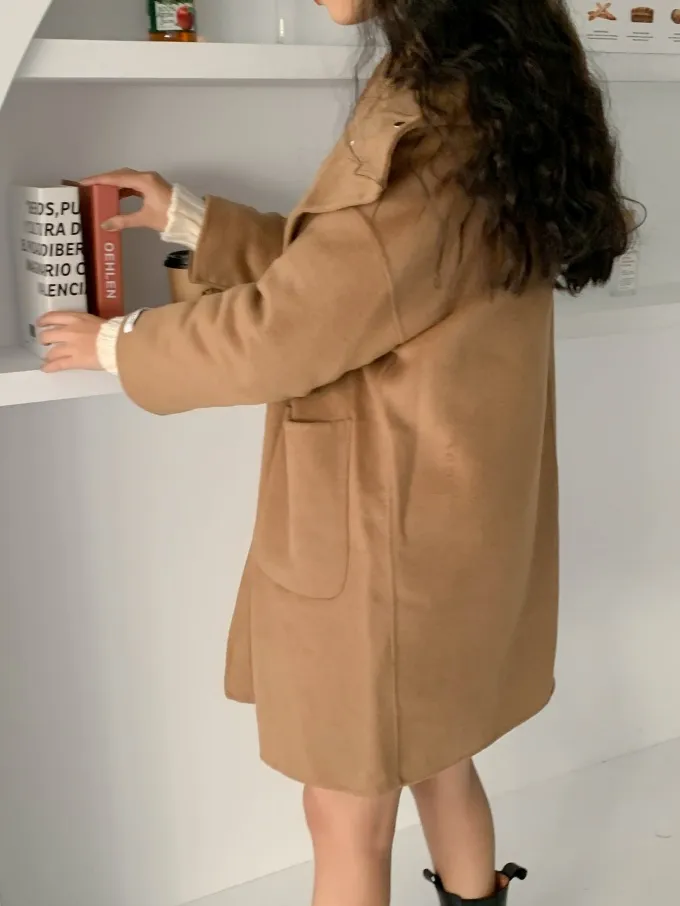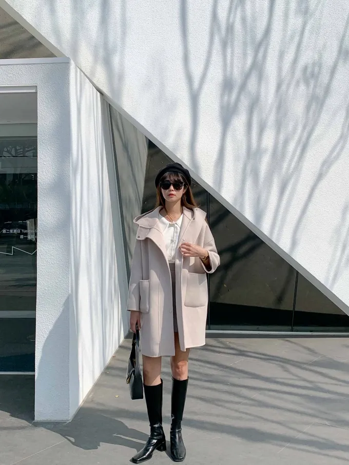 【福利標】雙面100%羊毛寬鬆連帽軟毛呢中長版大衣外套_B16