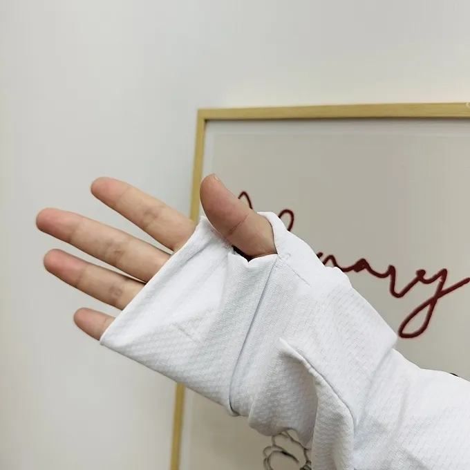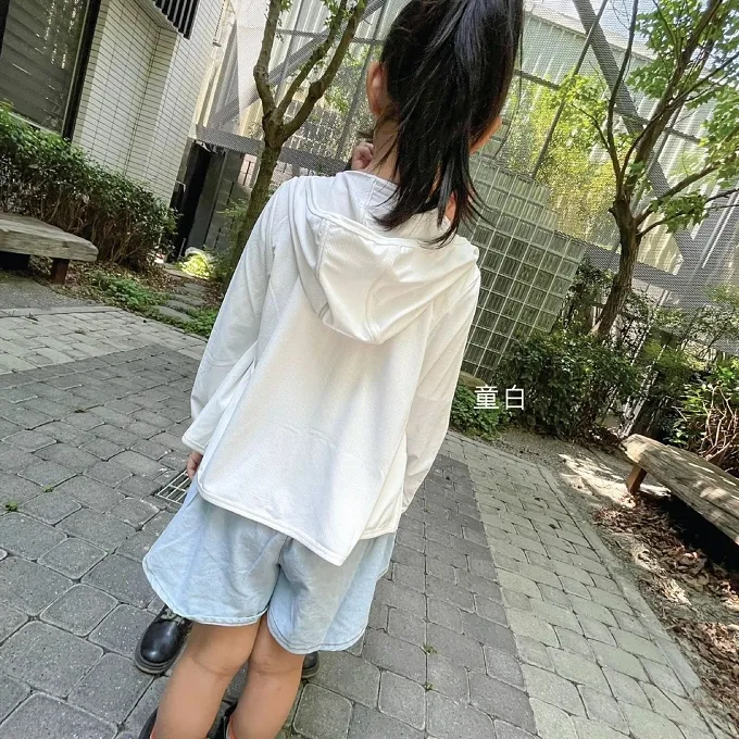 成人款一樣在袖口有指套設計,不僅有型且活動方便,讓你騎車時,保護手背不曬傷!