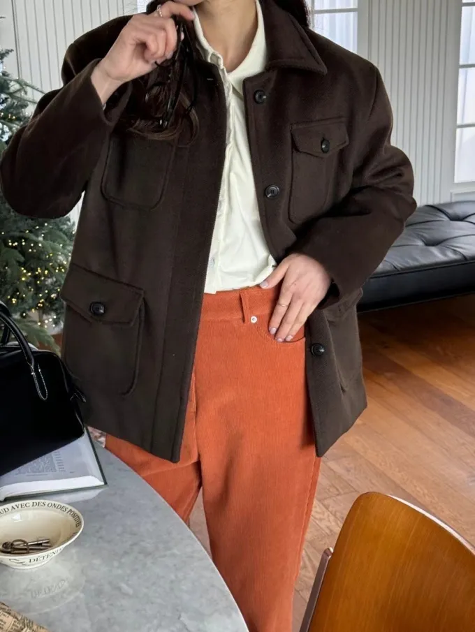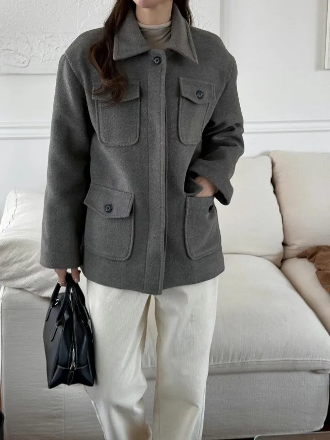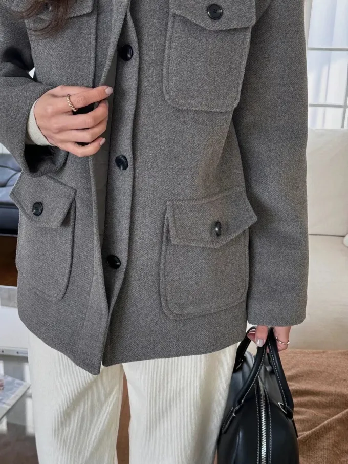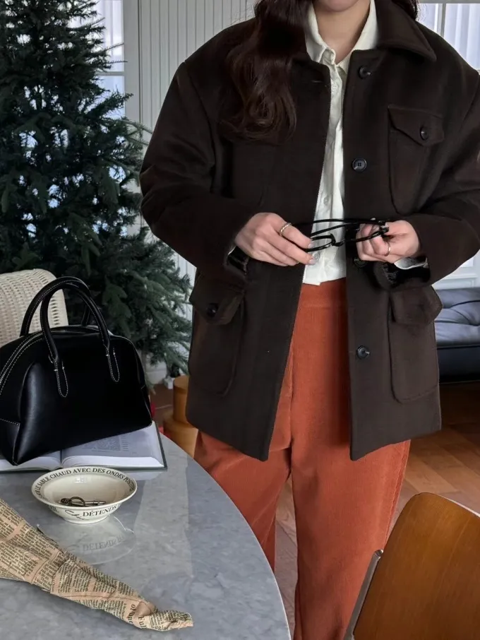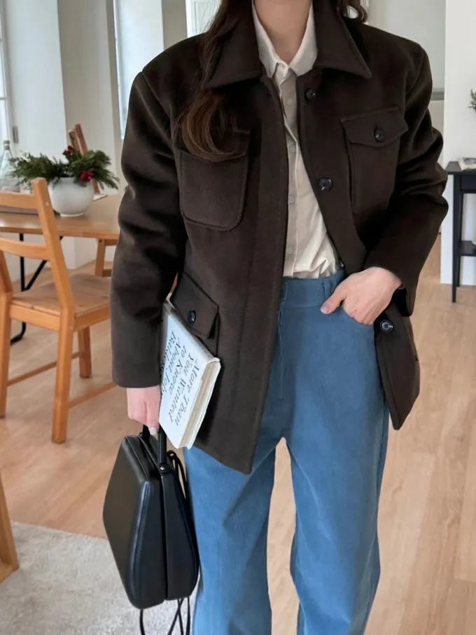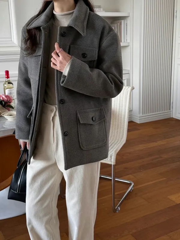 【現貨】韓國 率性挺版鋪棉毛呢外套_A10