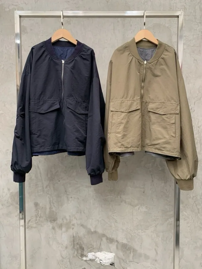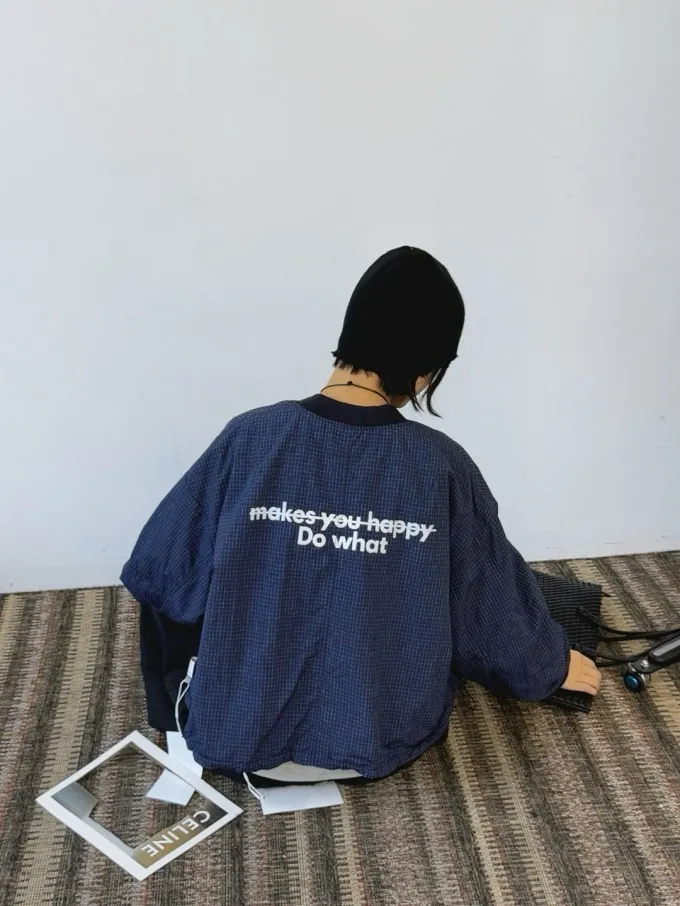 格紋印字飛行外套(可雙面穿)_A77
