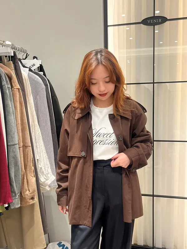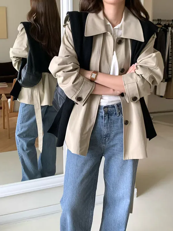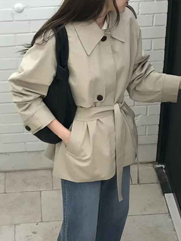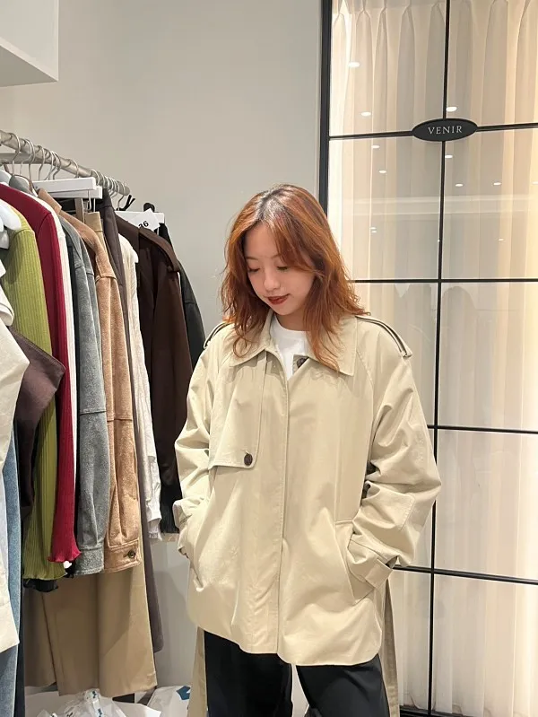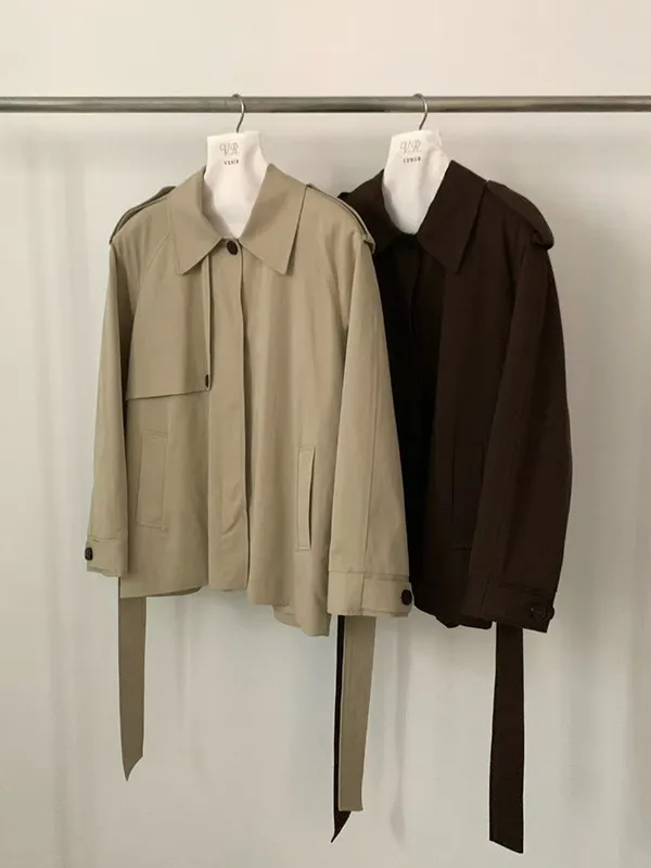 韓國 奢雅天絲短版風衣(天絲20%)_G34