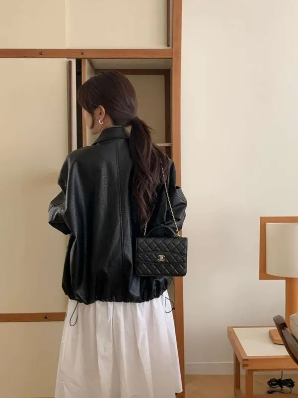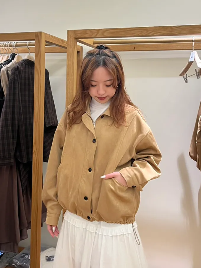 *S-XL可穿 *羊羔皮+彈力10% *落肩版型 *抽繩設計
