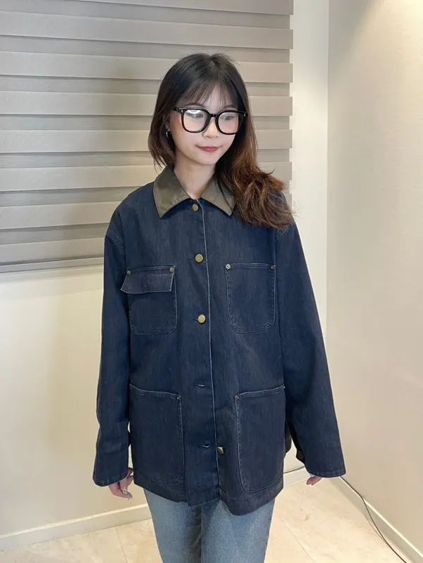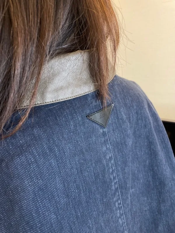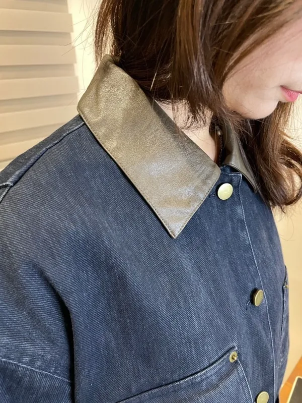 韓國 韓國 皮革領拼接牛仔外套_H64