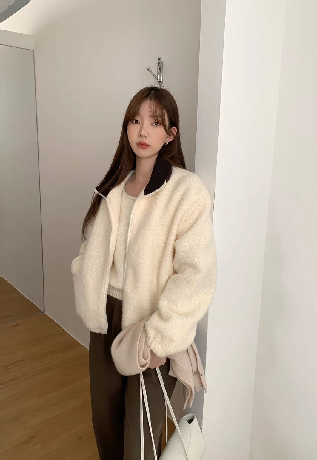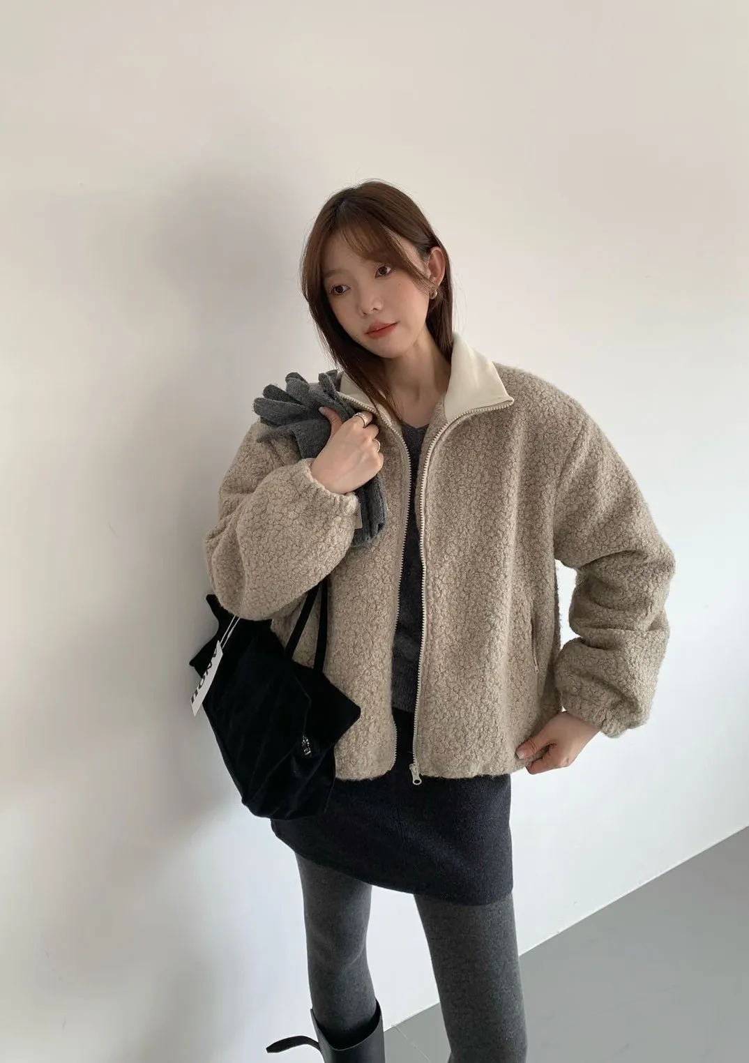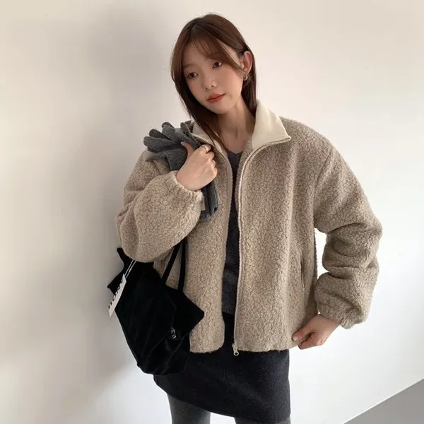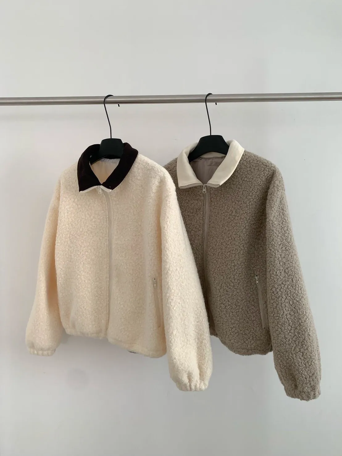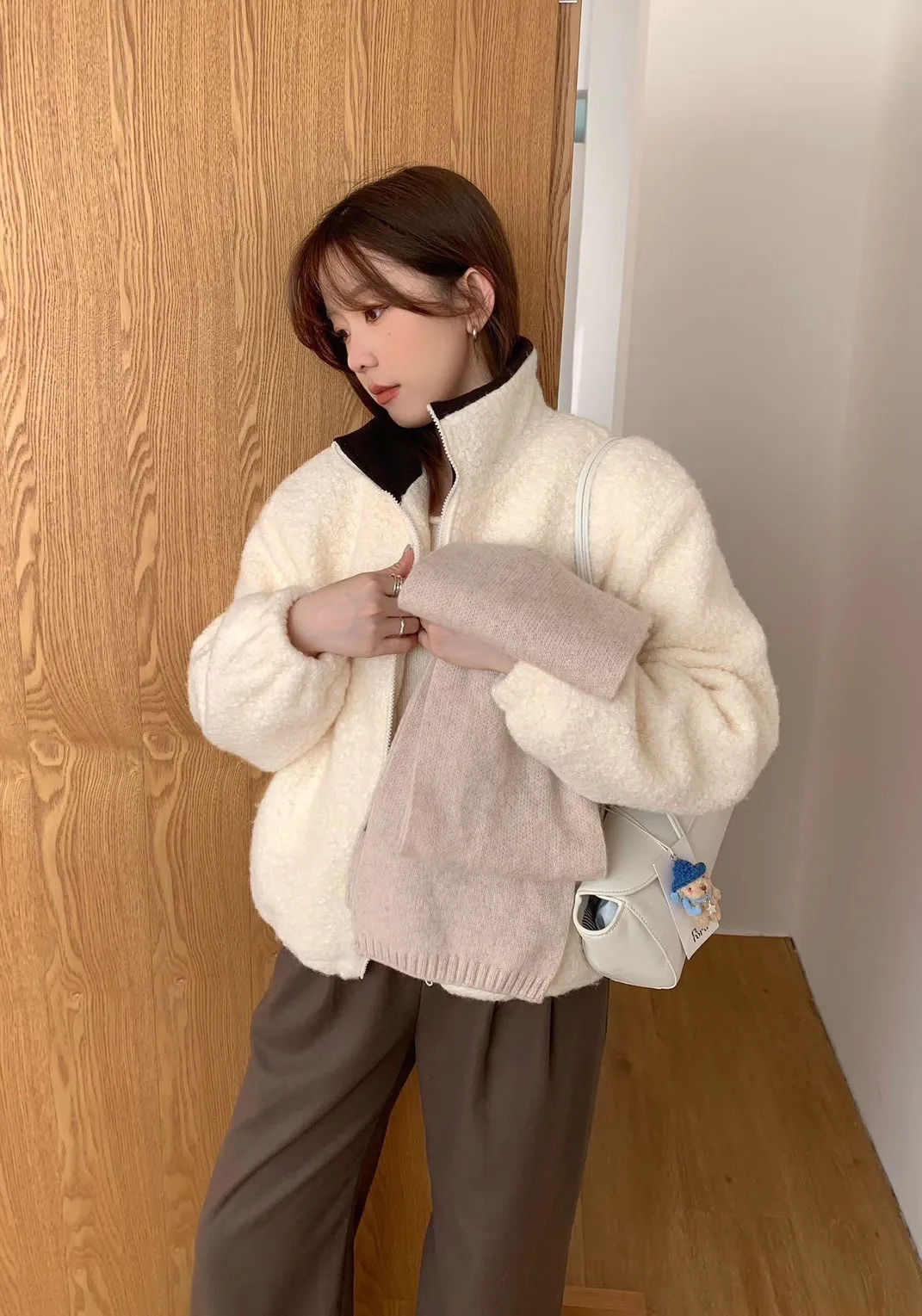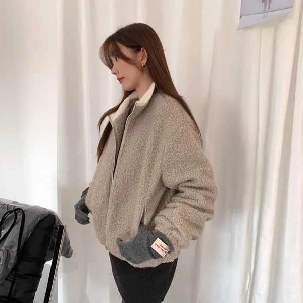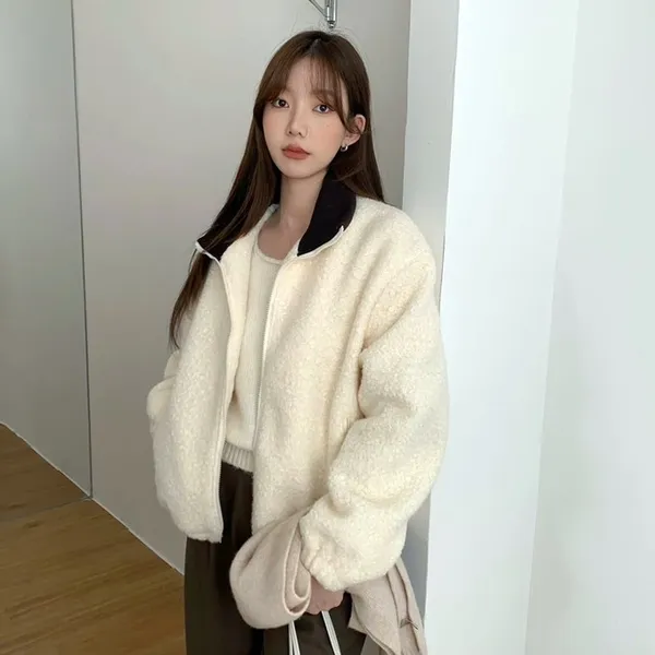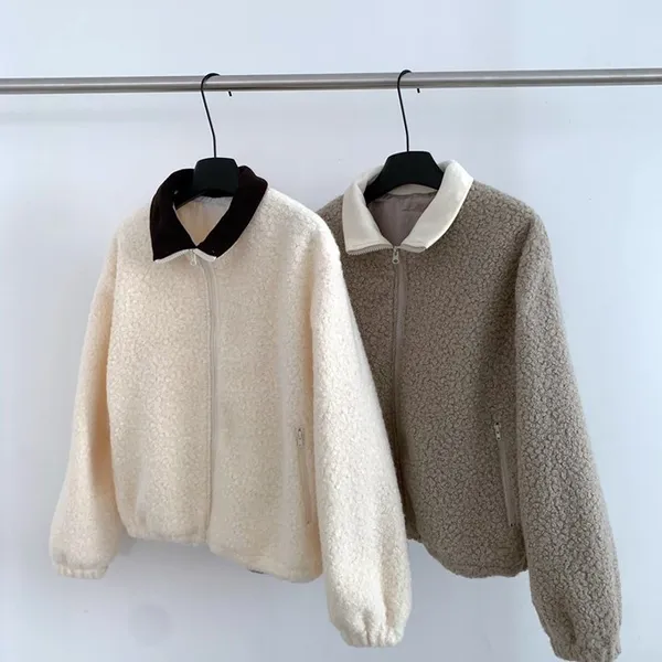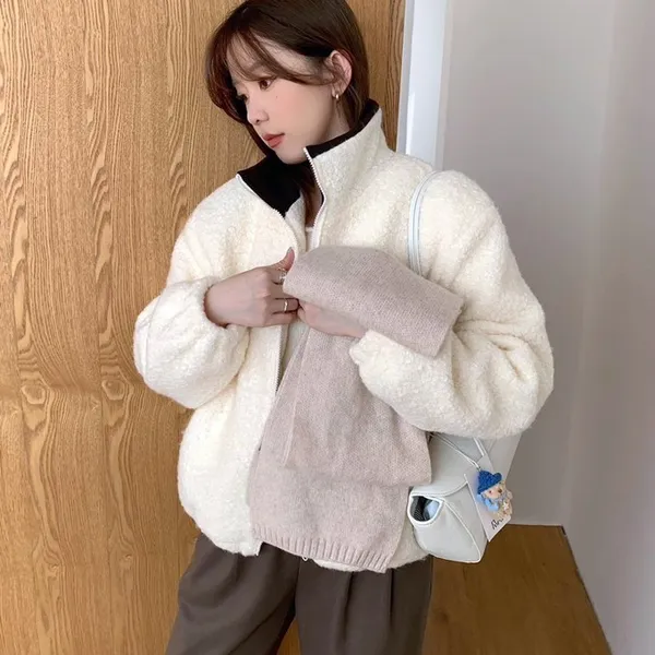 捲毛撞色領外套_E16