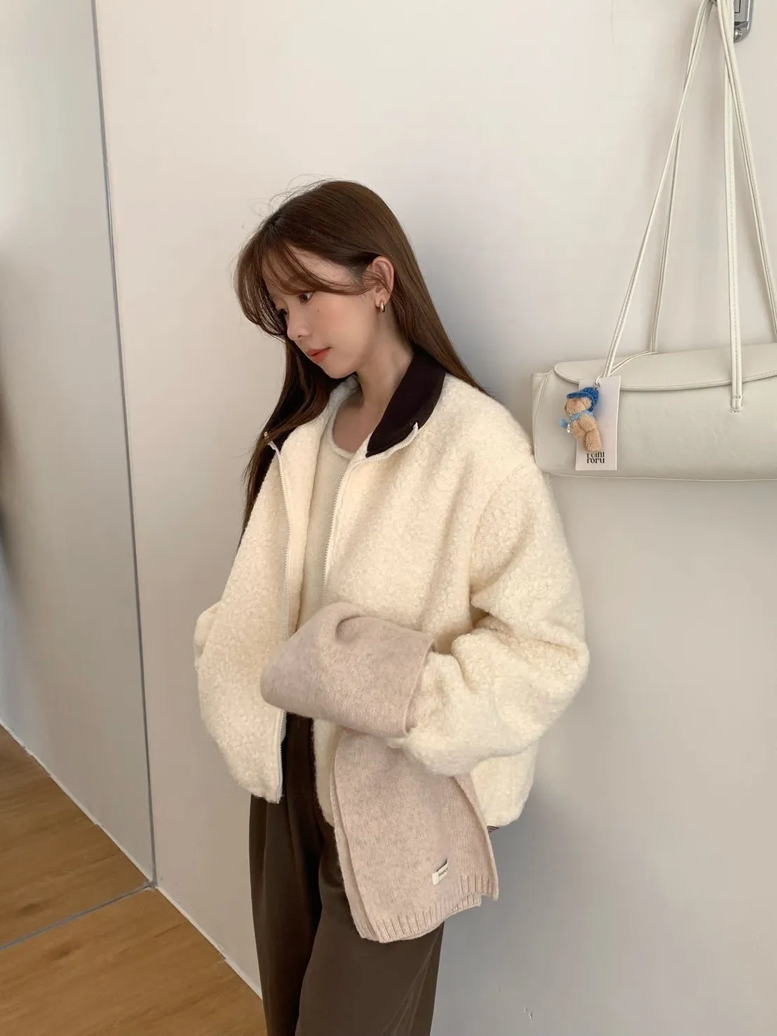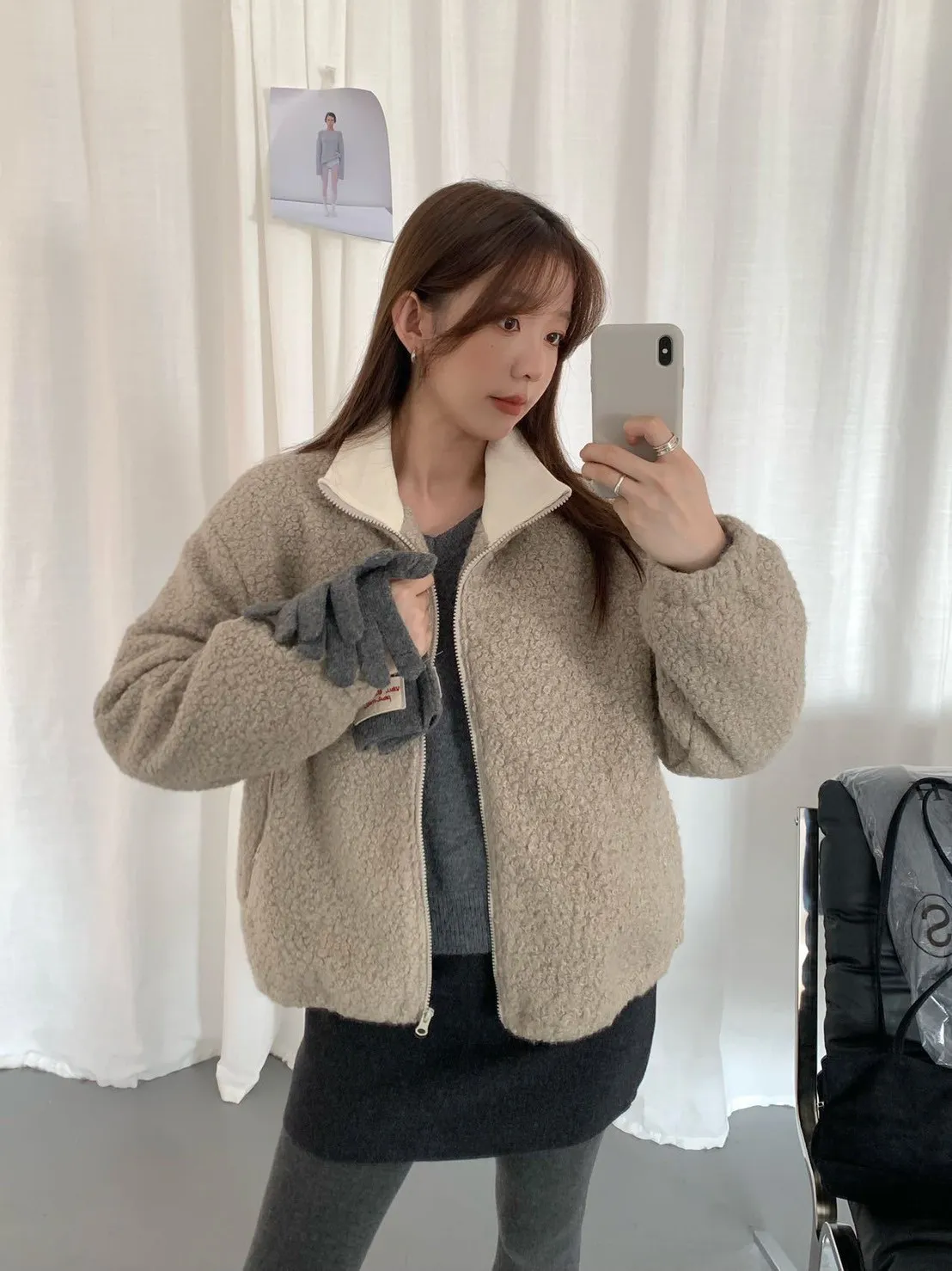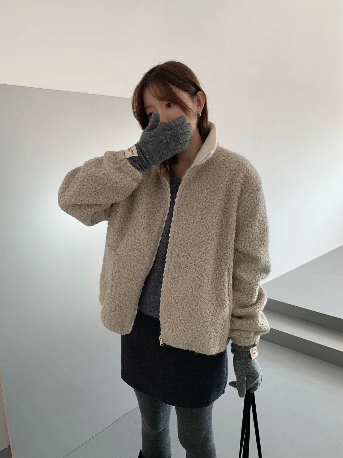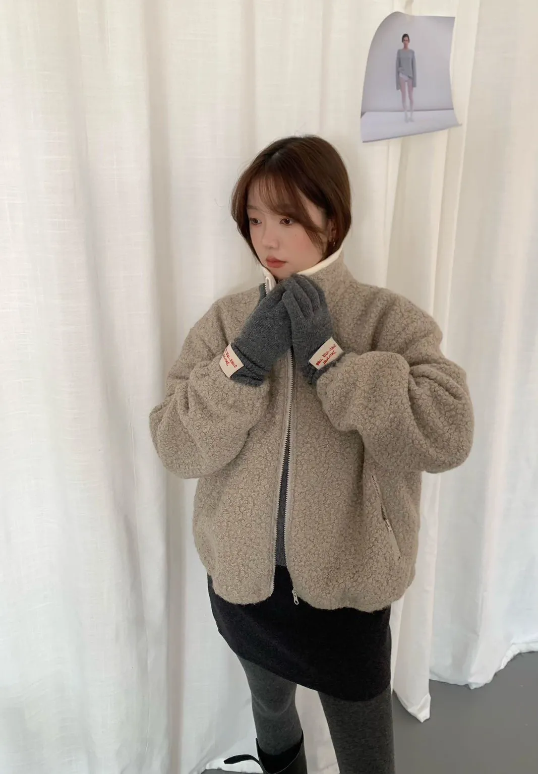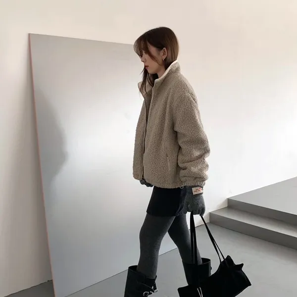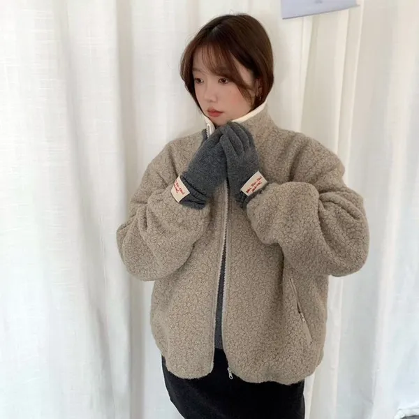 捲毛撞色領外套_E16
