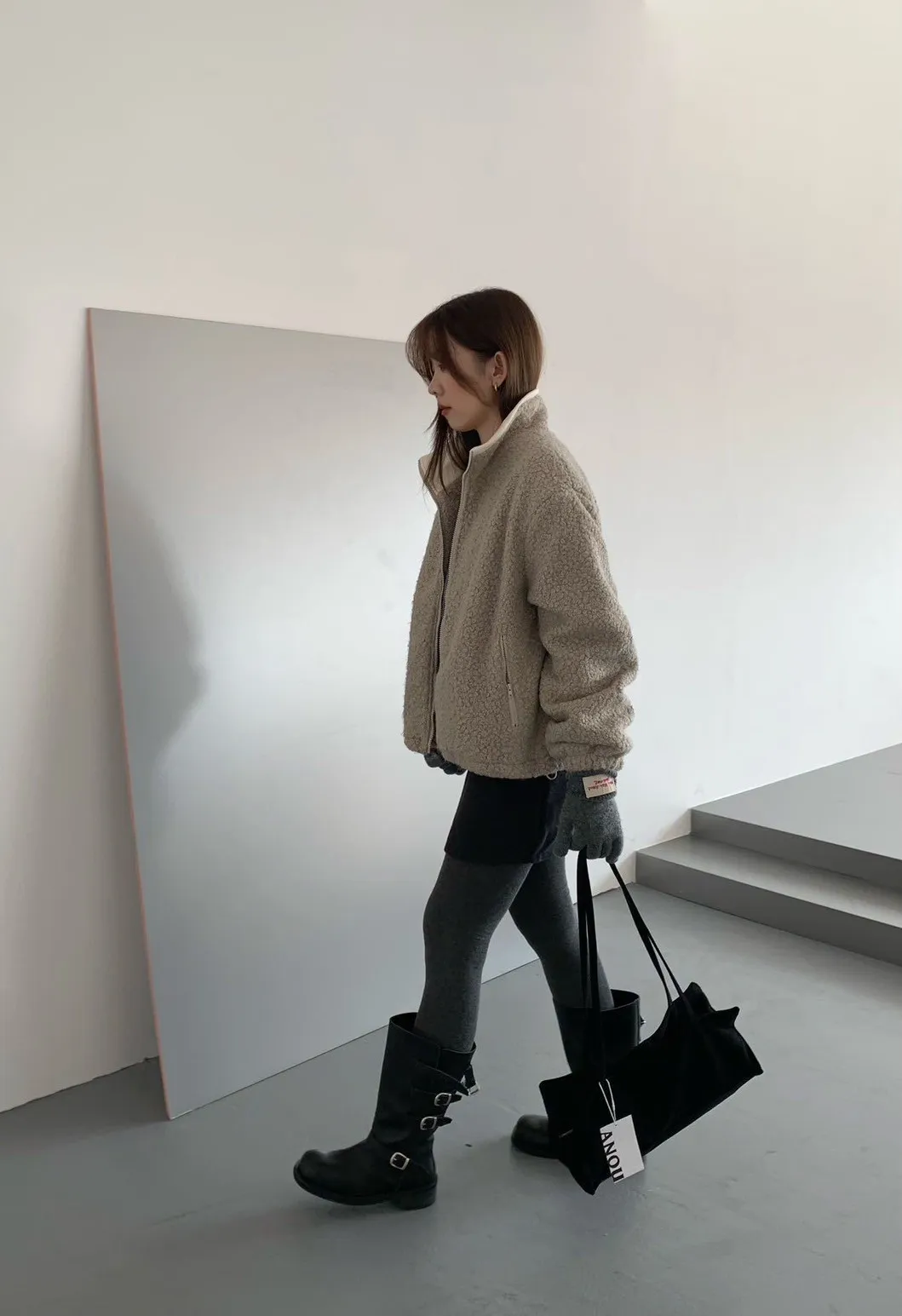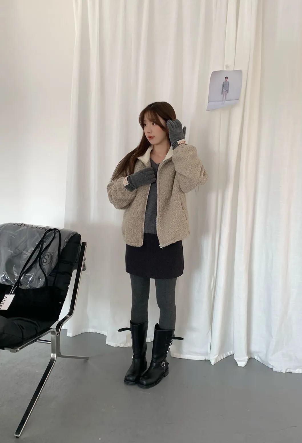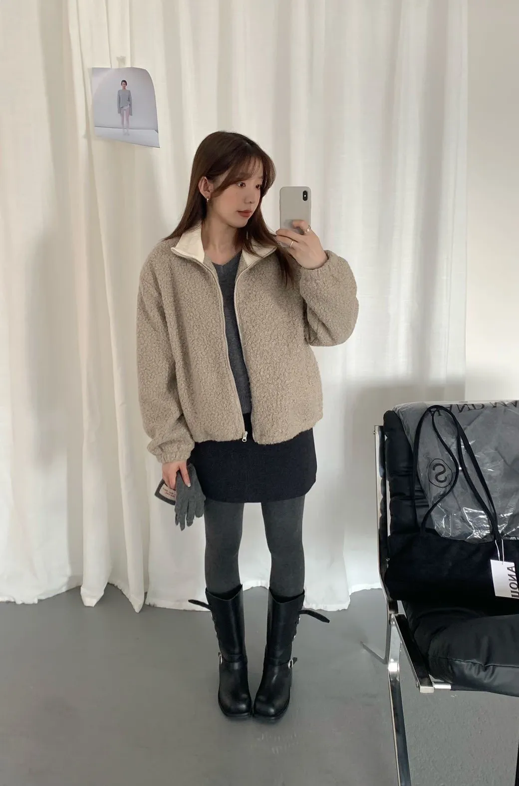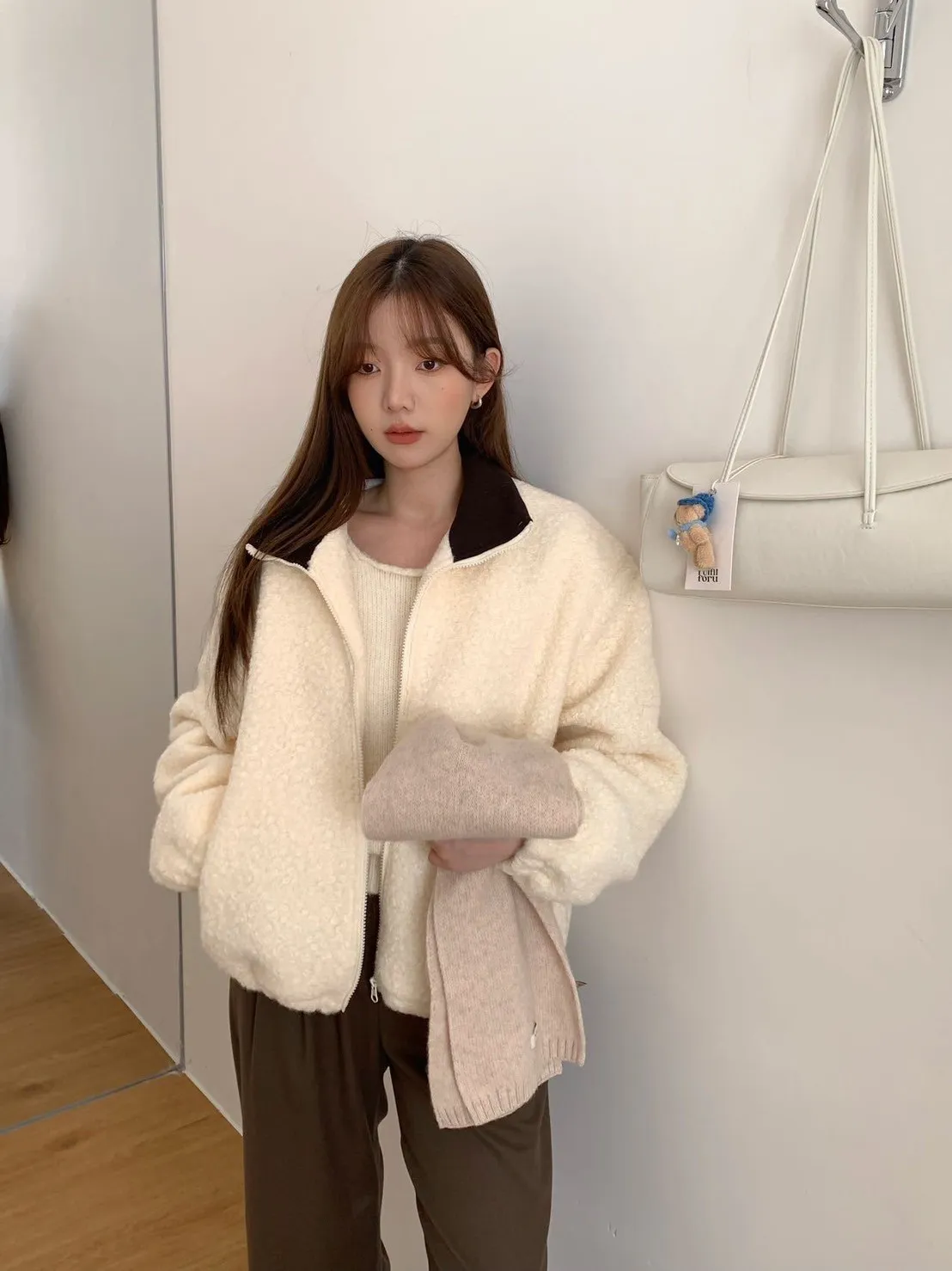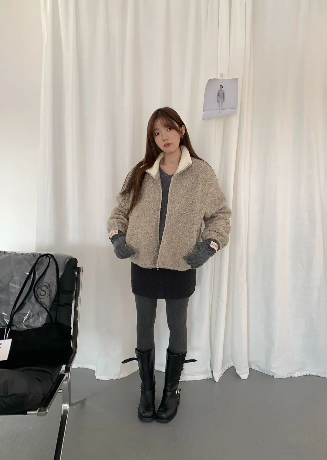 捲毛撞色領外套_E16