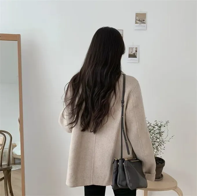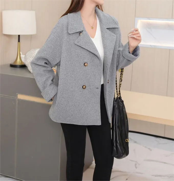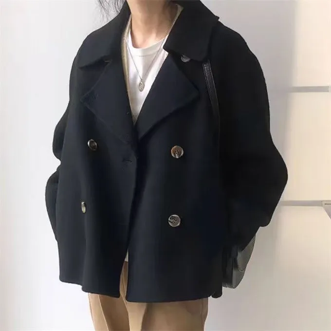 【大推】韓劇高級感大翻領雙釦毛呢外套_B11