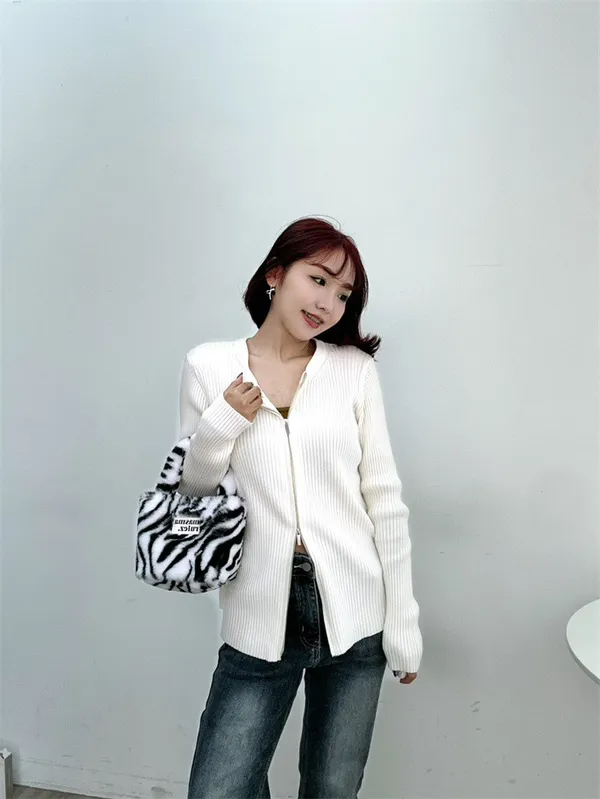 針織雙拉鍊圓領上衣_D10