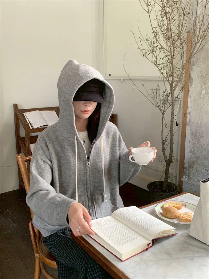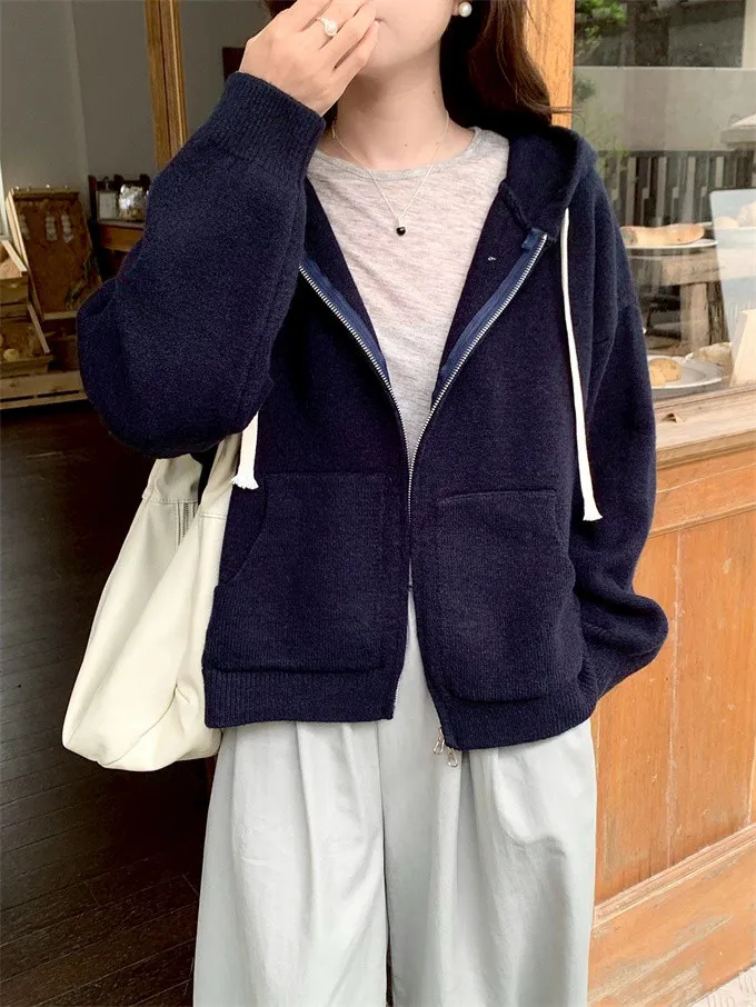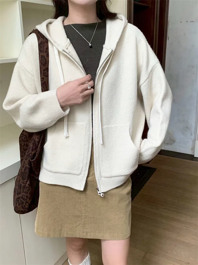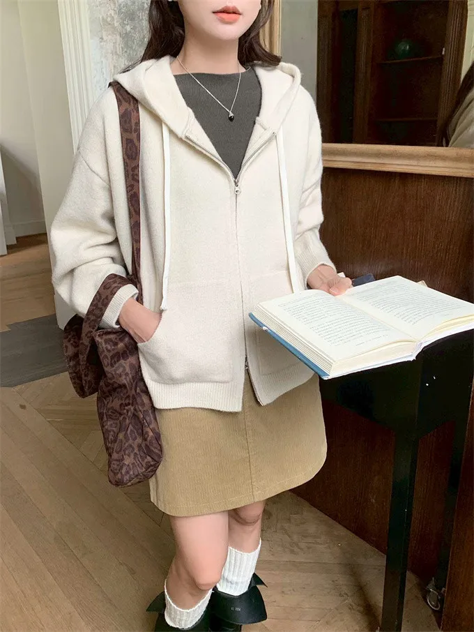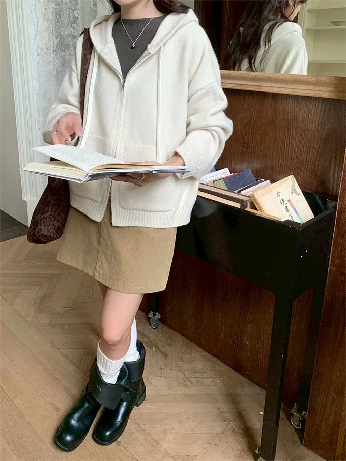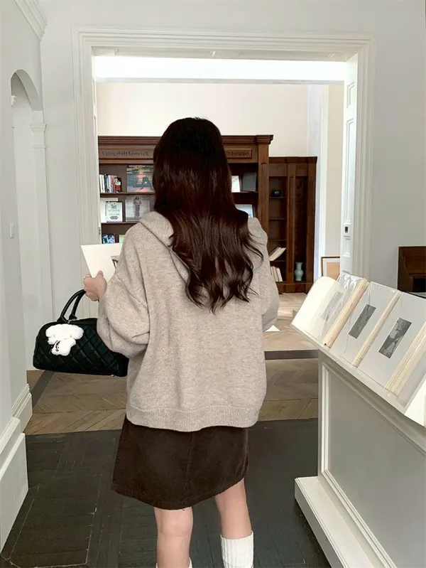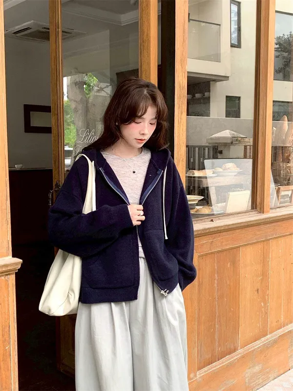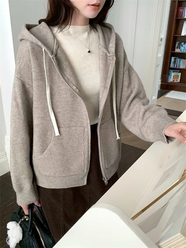 奶油ins風連帽針織外套_D10