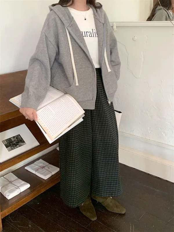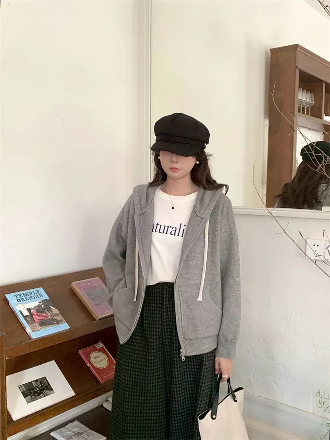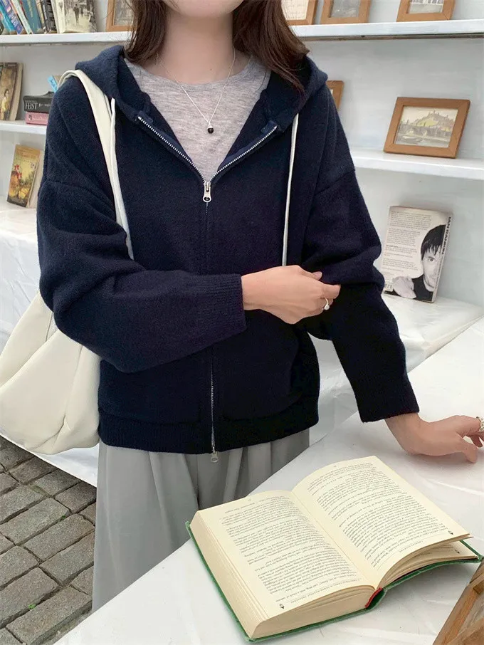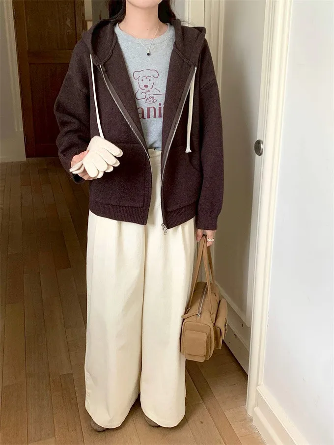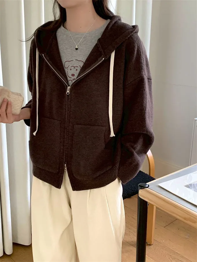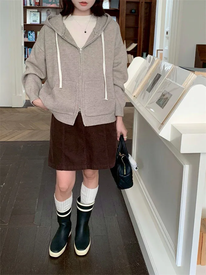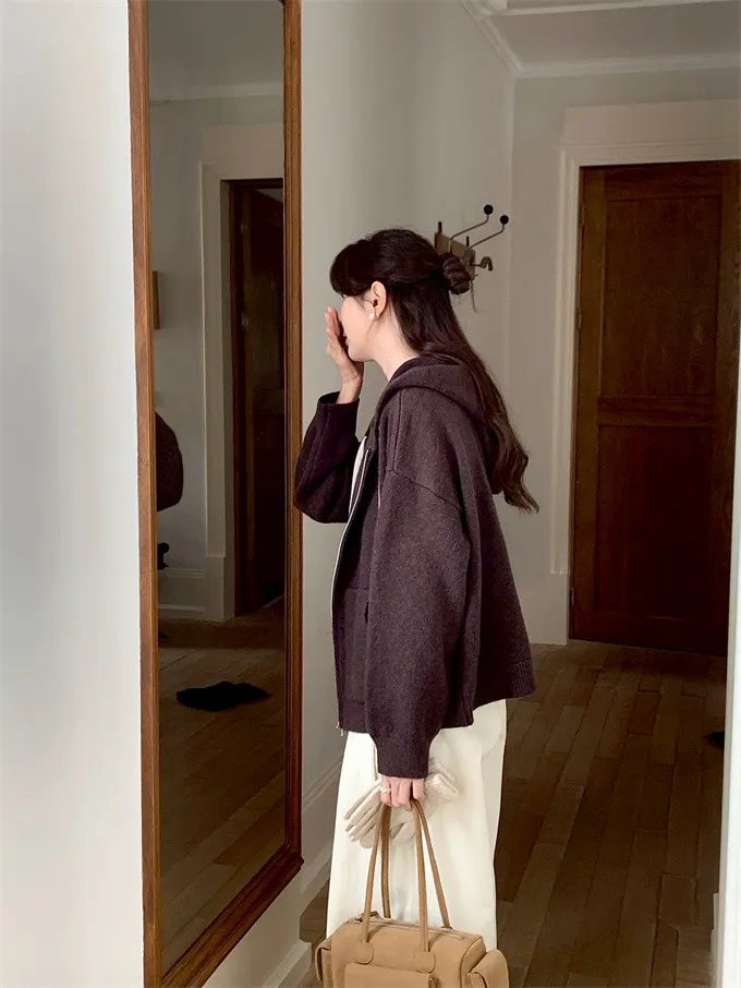 奶油ins風連帽針織外套_D10