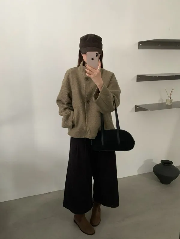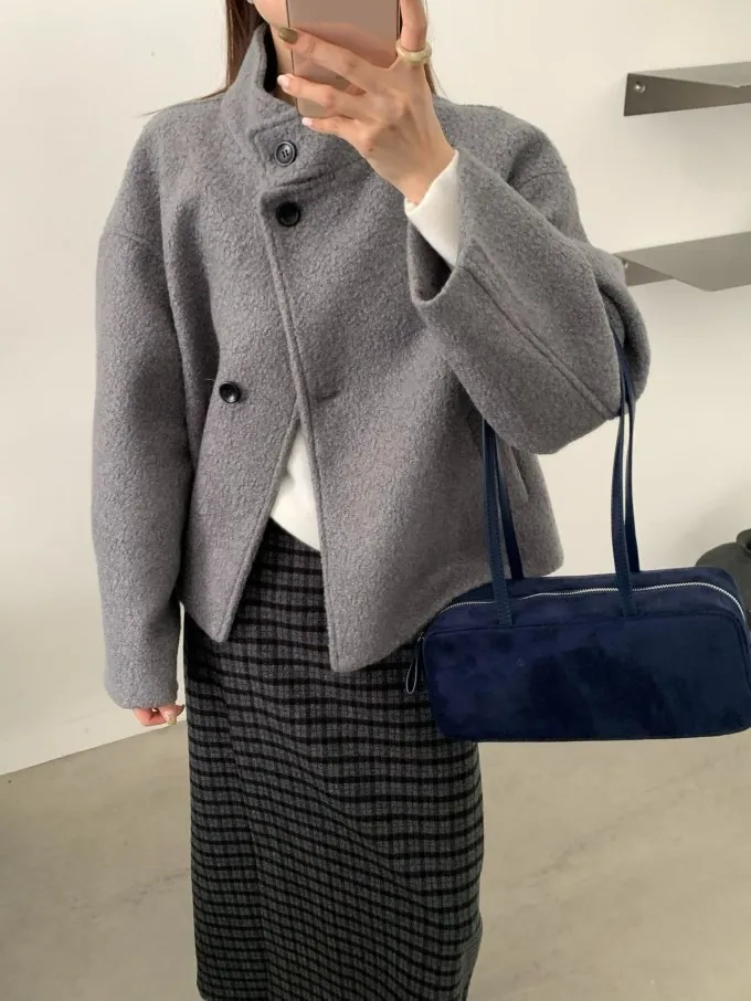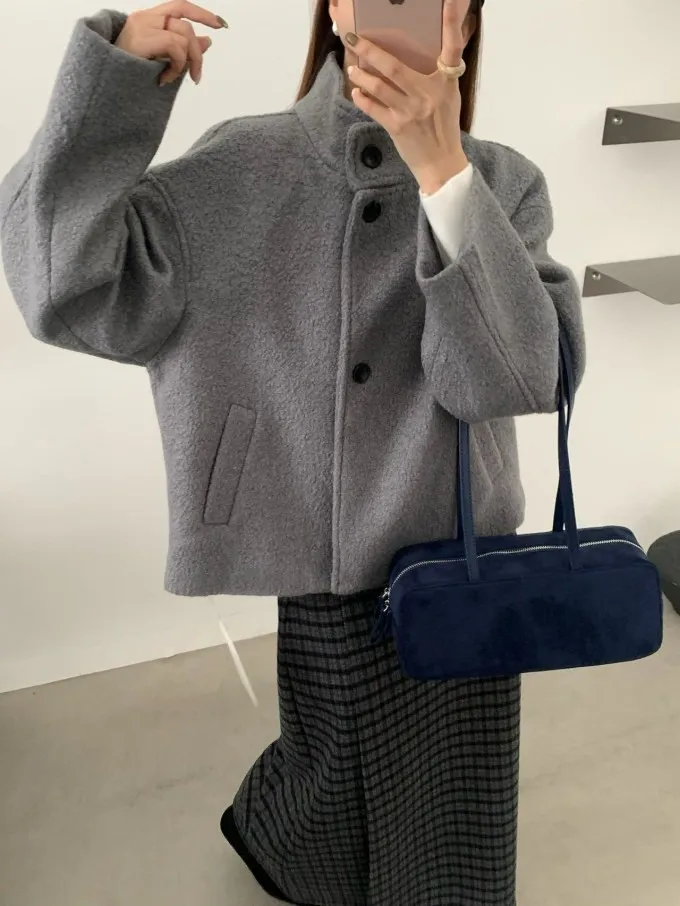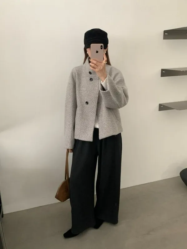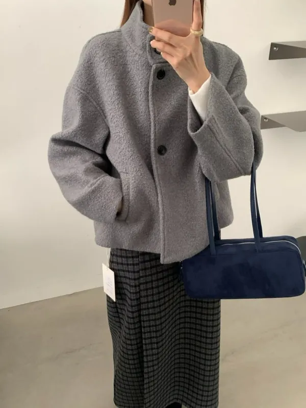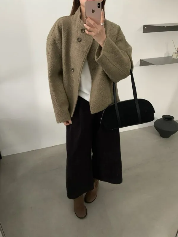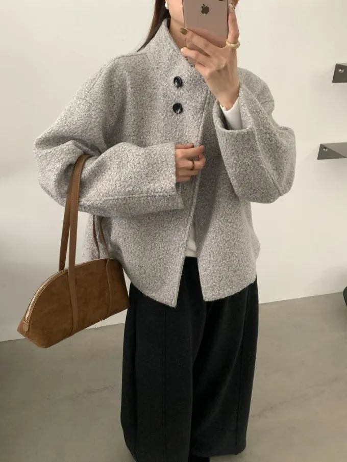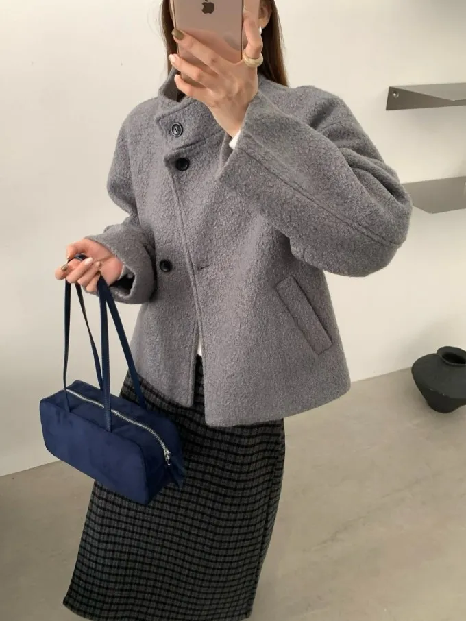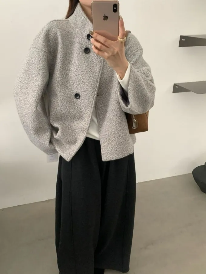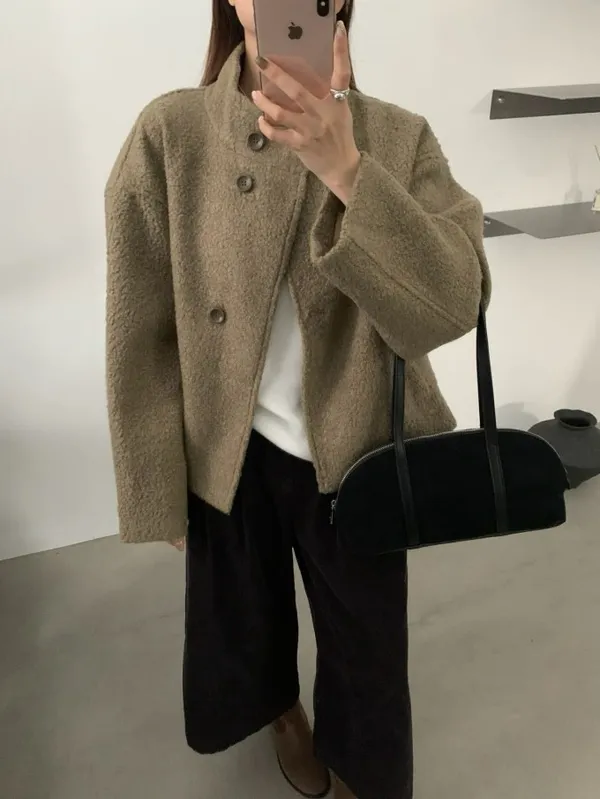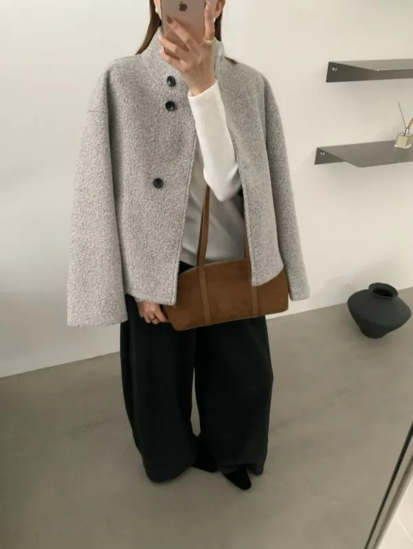 【限量5件】捲捲毛呢立領短外套_F05