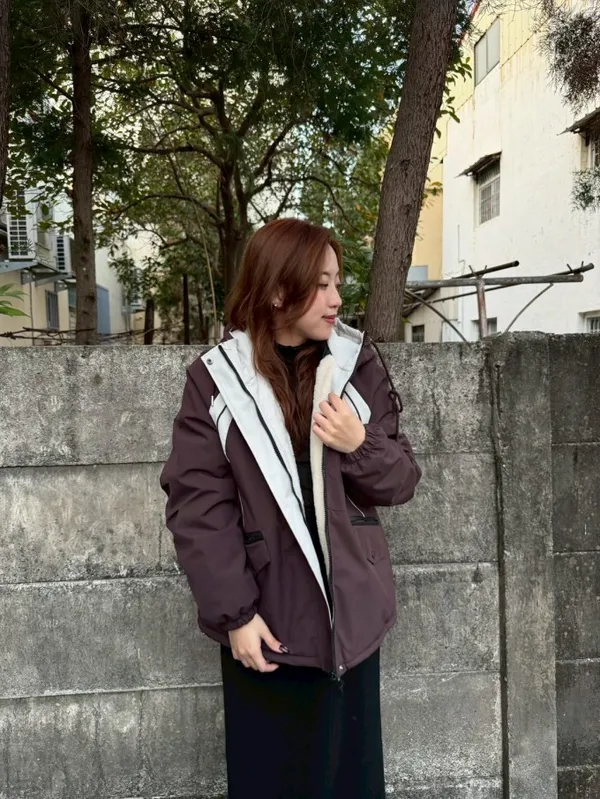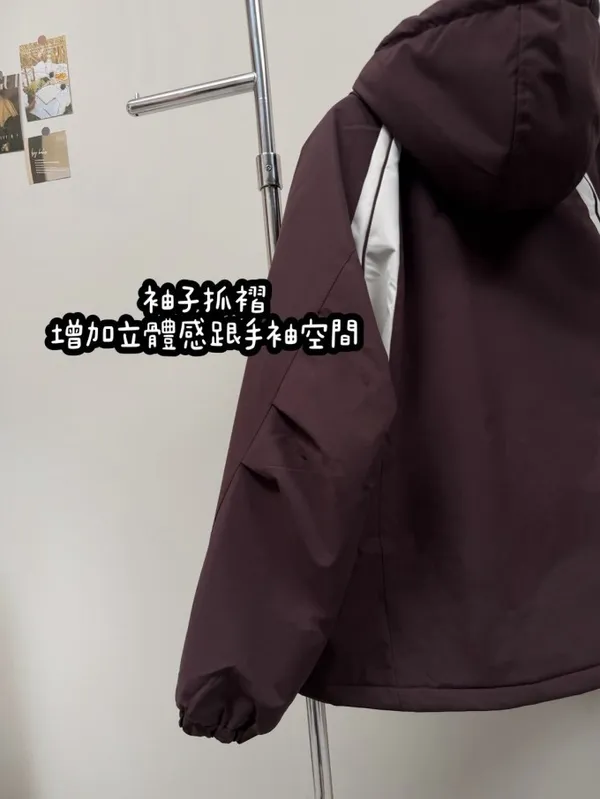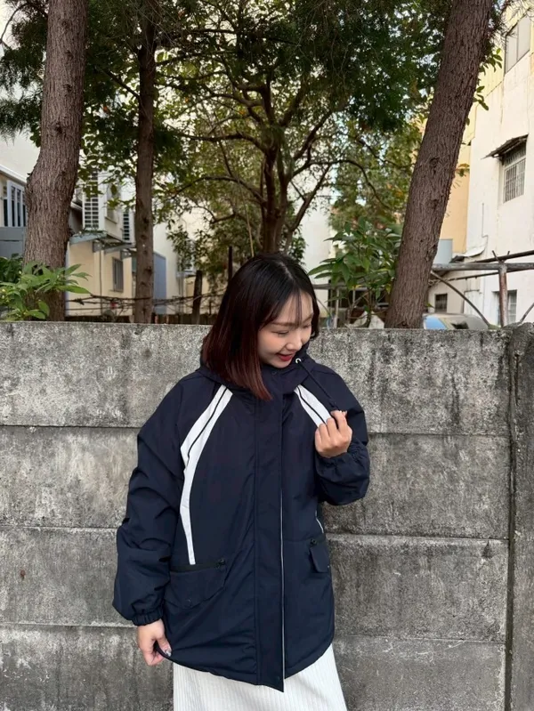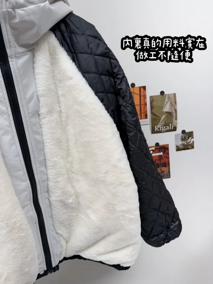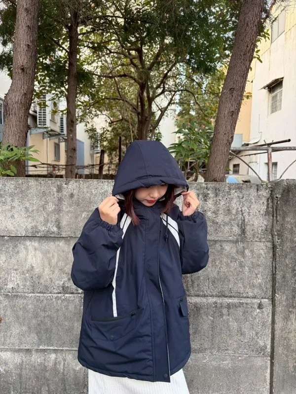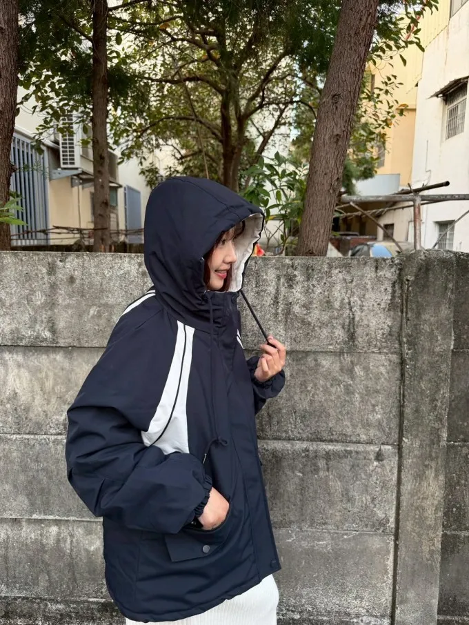 ⭐連帽是這件的亮點之一帽沿有:挺度,戴起來臉會變小,而且風大時拉鍊一拉上,脖子瞬間變超暖