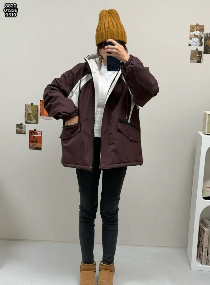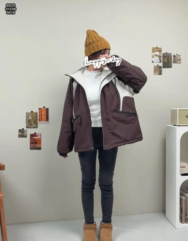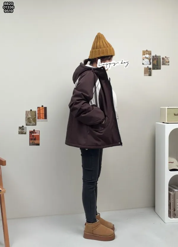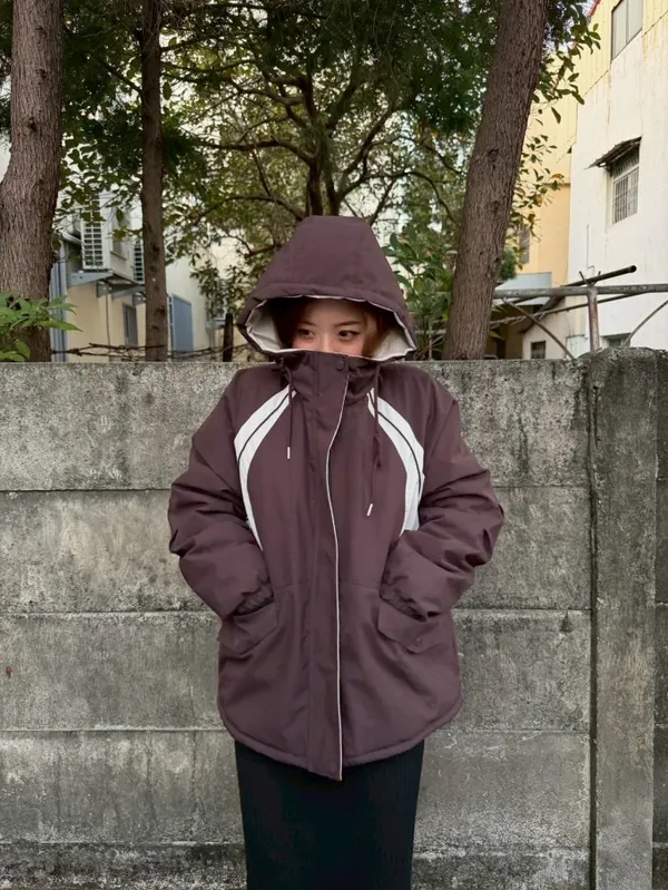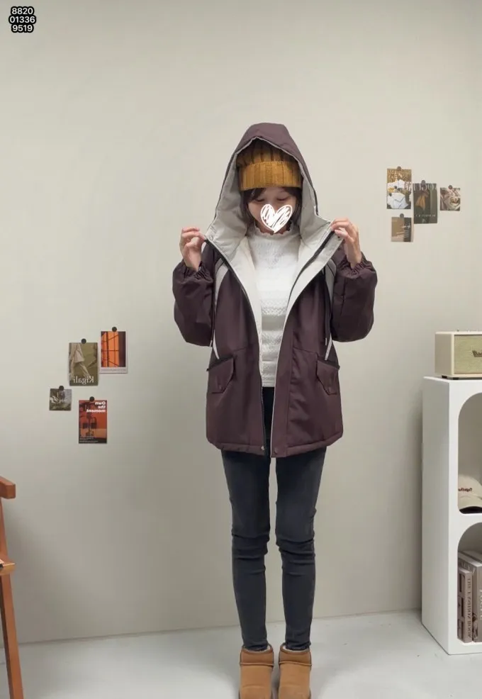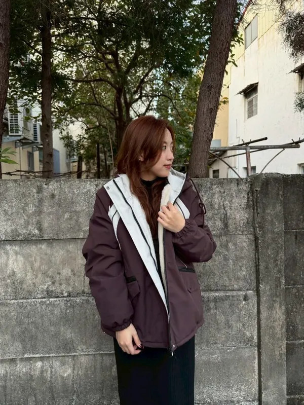 ⭐連帽是這件的亮點之一帽沿有:挺度,戴起來臉會變小,而且風大時拉鍊一拉上,脖子瞬間變超暖