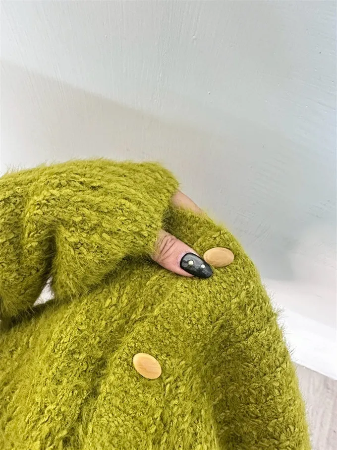 V領橄欖釦水貂毛小外套|商品介紹
