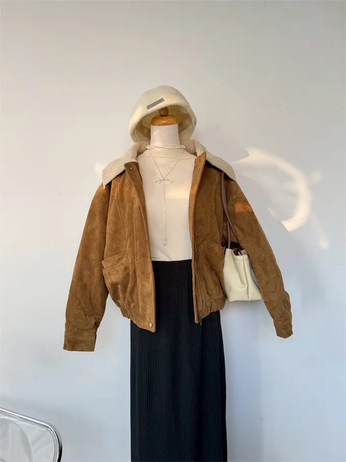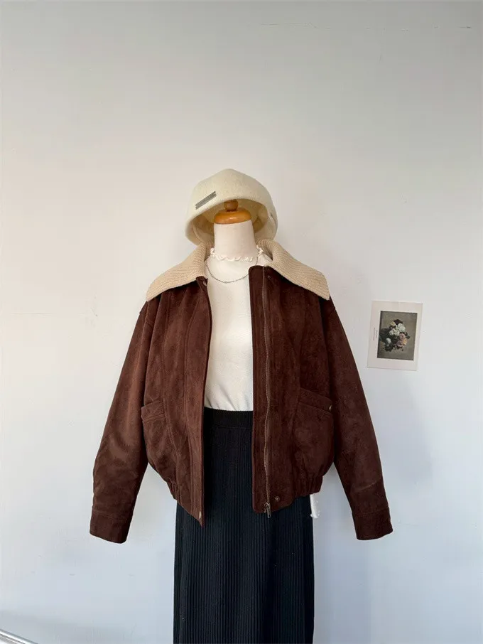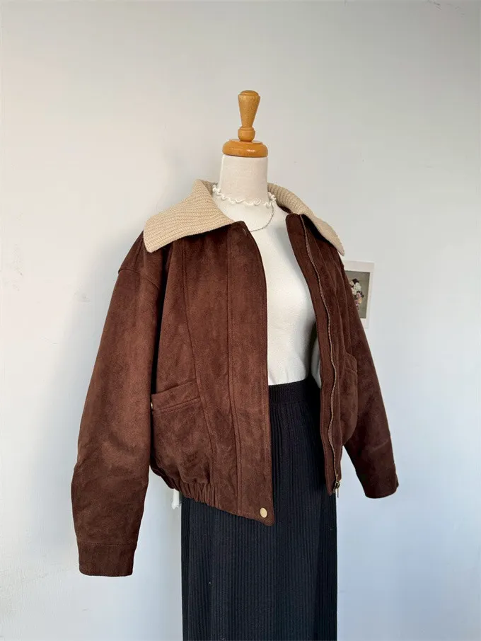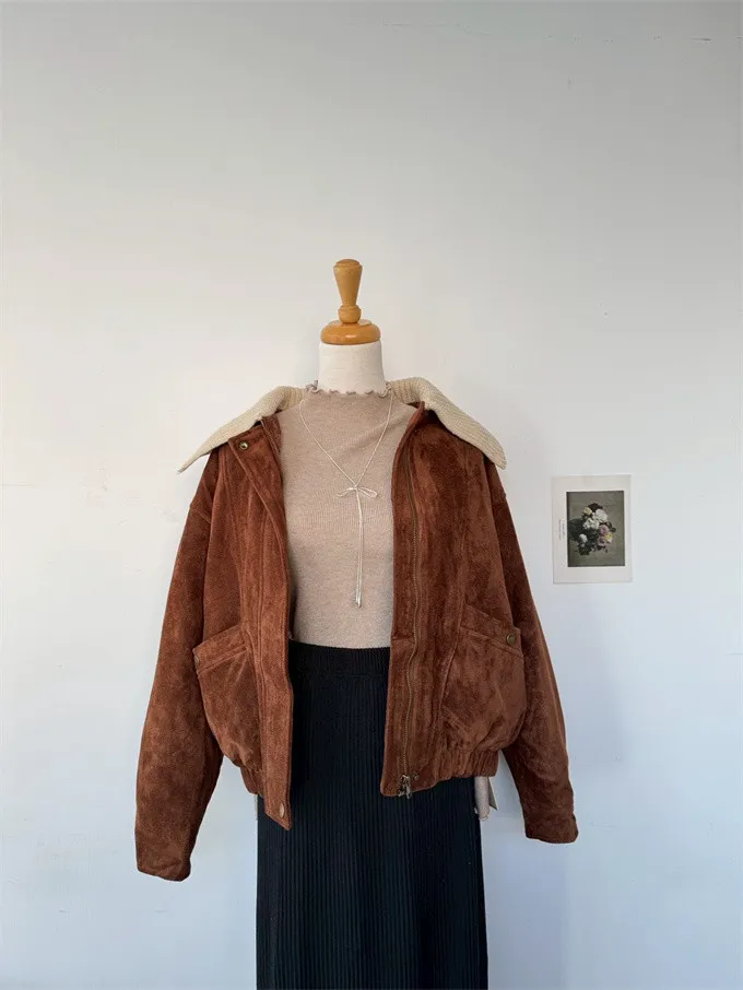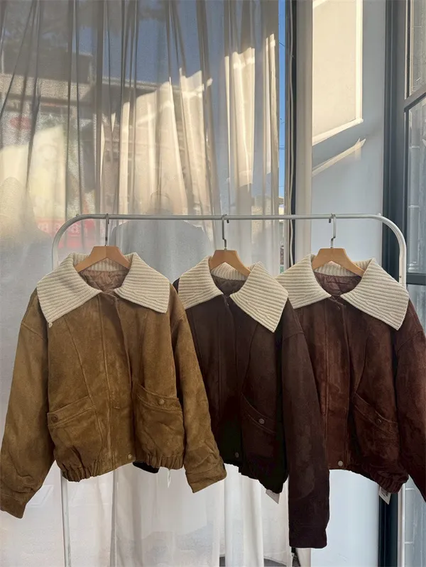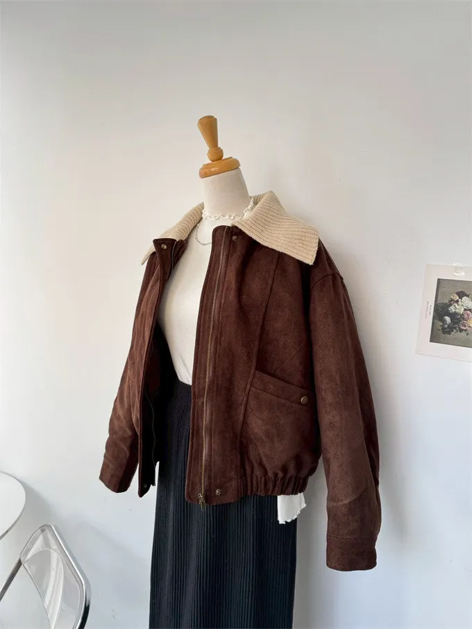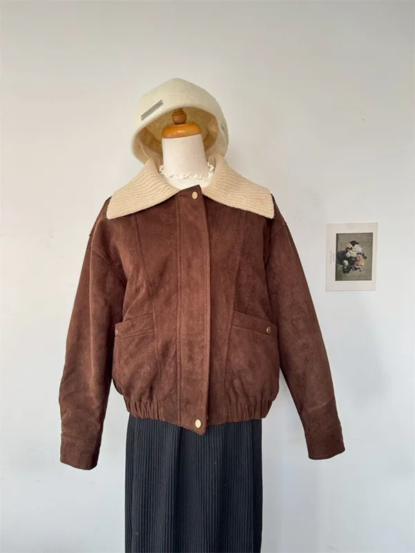 內鋪棉針織領麂皮外套_A05