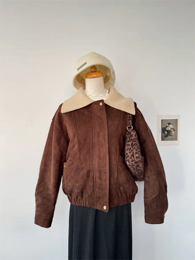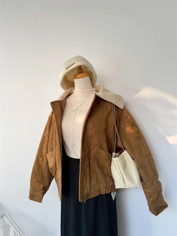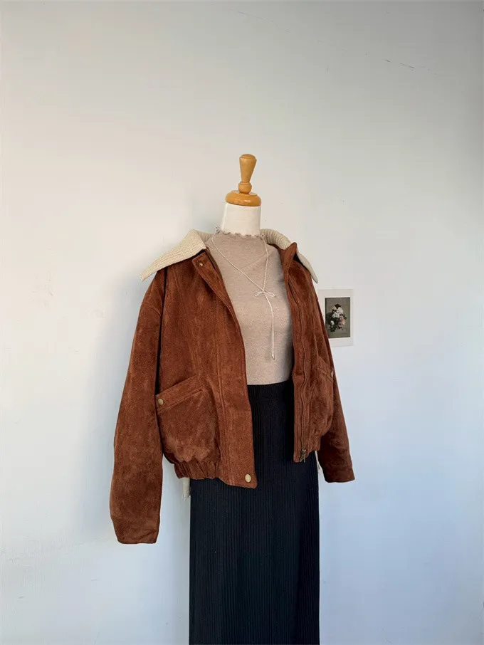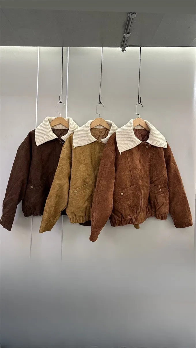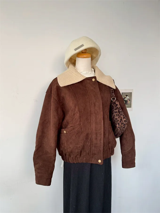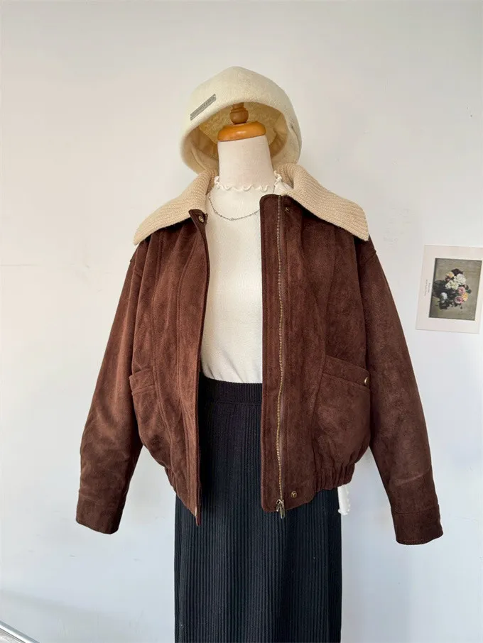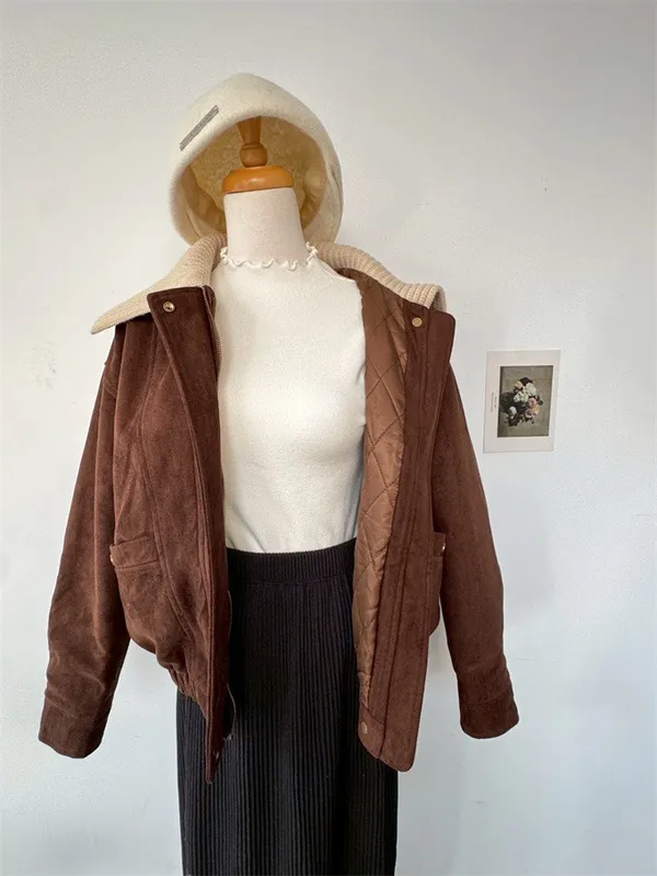 內鋪棉針織領麂皮外套_A05