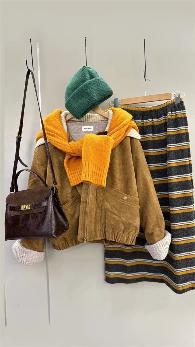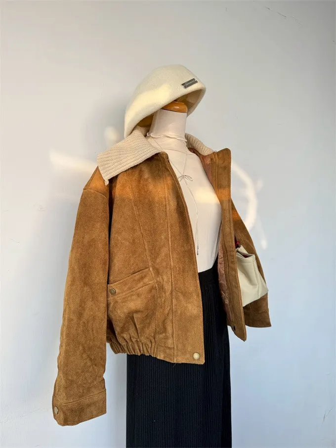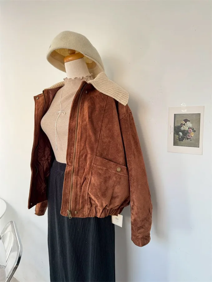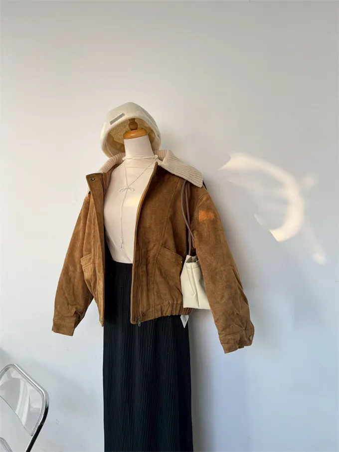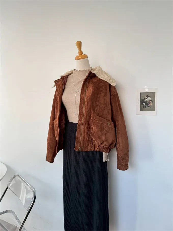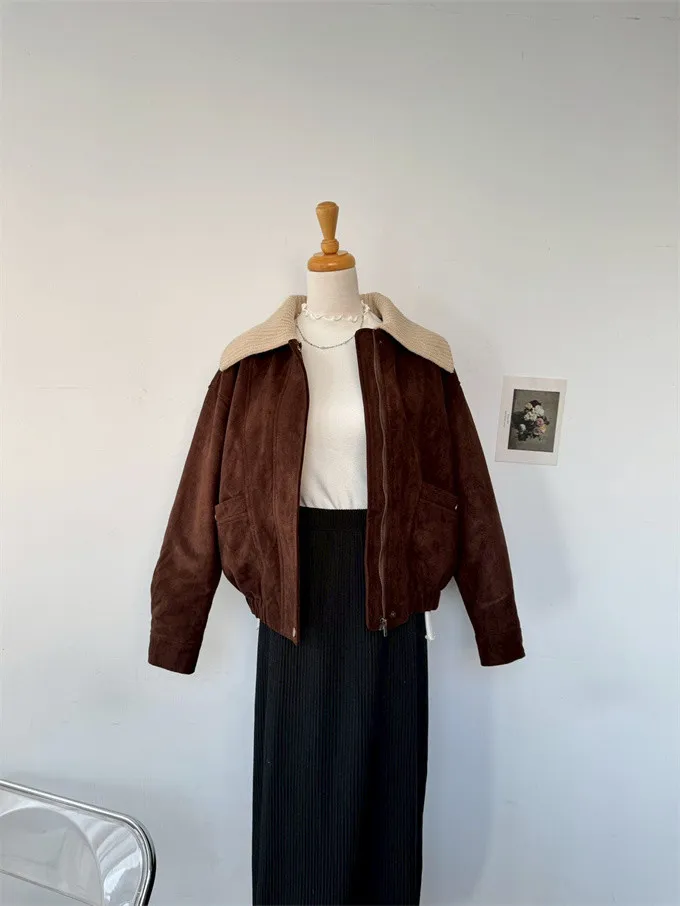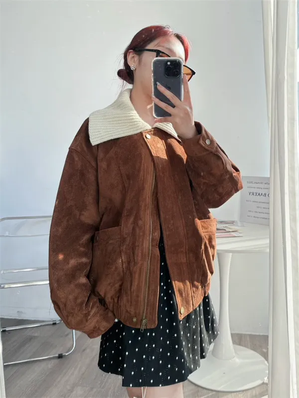 內鋪棉針織領麂皮外套_A05
