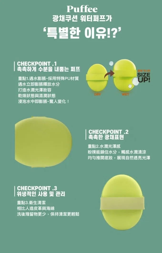 粉撲尺寸超驚人,沾水後會膨脹變手掌大小