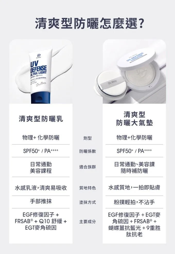 DR. MAY 美博士專業隔離清爽防曬乳 SPF50+ PA++++ (40ml) DR. MAY 美博士 專業隔離高效防曬乳 SPF50+ PA++++(60ml) DR. MAY 美博士專業潤色清爽防曬乳(40ml) DR. MAY 美博士專業防曬氣墊 (25g)