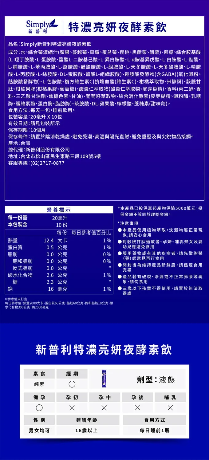 【新普利好睡組】SIMPLY新普利速酵特濃代謝夜酵素飲EX(10入/盒)*5盒_D20