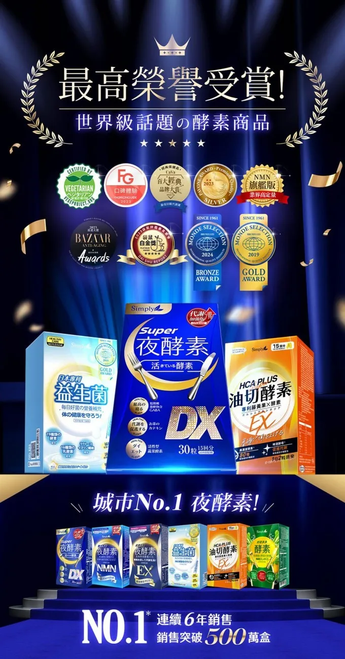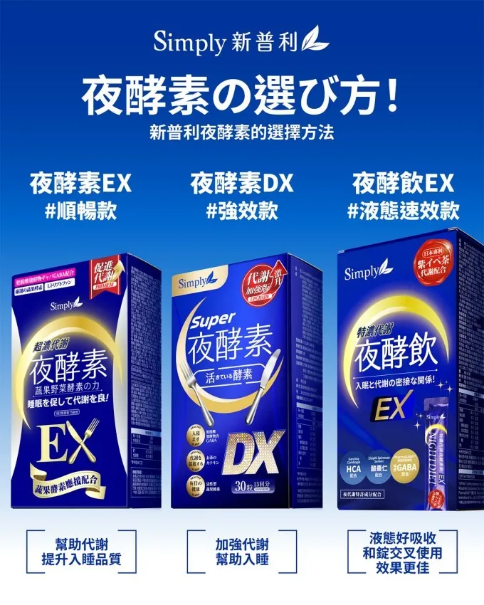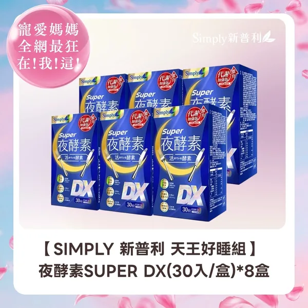 SIMPLY 新普利夜酵素SUPER DX(30入/盒)*8 SIMPLY 野菜多多酵素粉(15入/盒)*1 【果凍隨機1盒】 SIMPLY 新普利晚美入睡夜酵凍(10入/盒) m2 美度 超能膠原果凍(10入/盒)