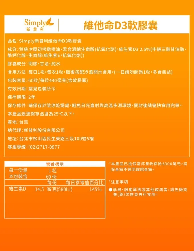 SIMPLY 維生素D軟膠囊(60入/盒)