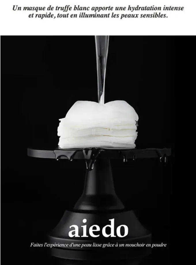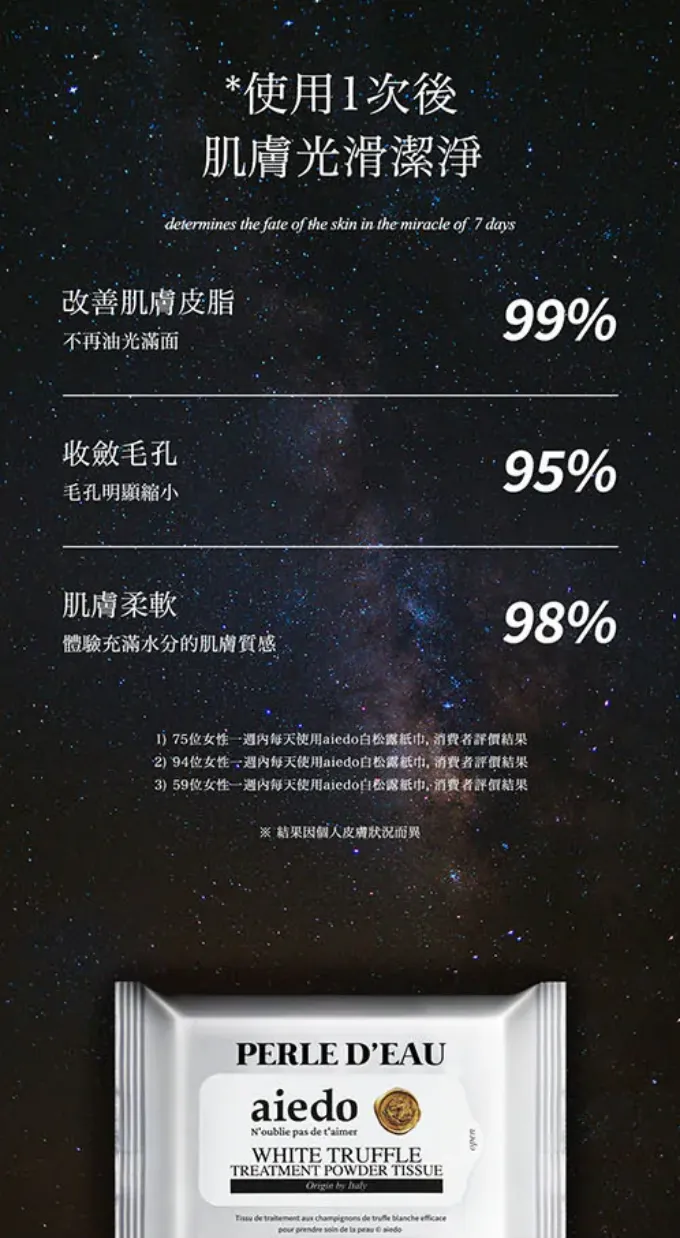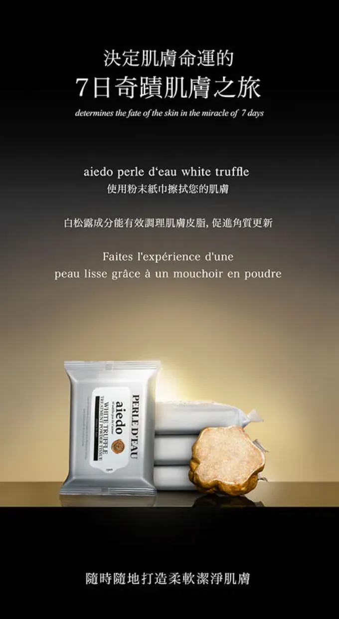結合柔細紙巾材質與白松露植萃概念設計的粉末紙巾